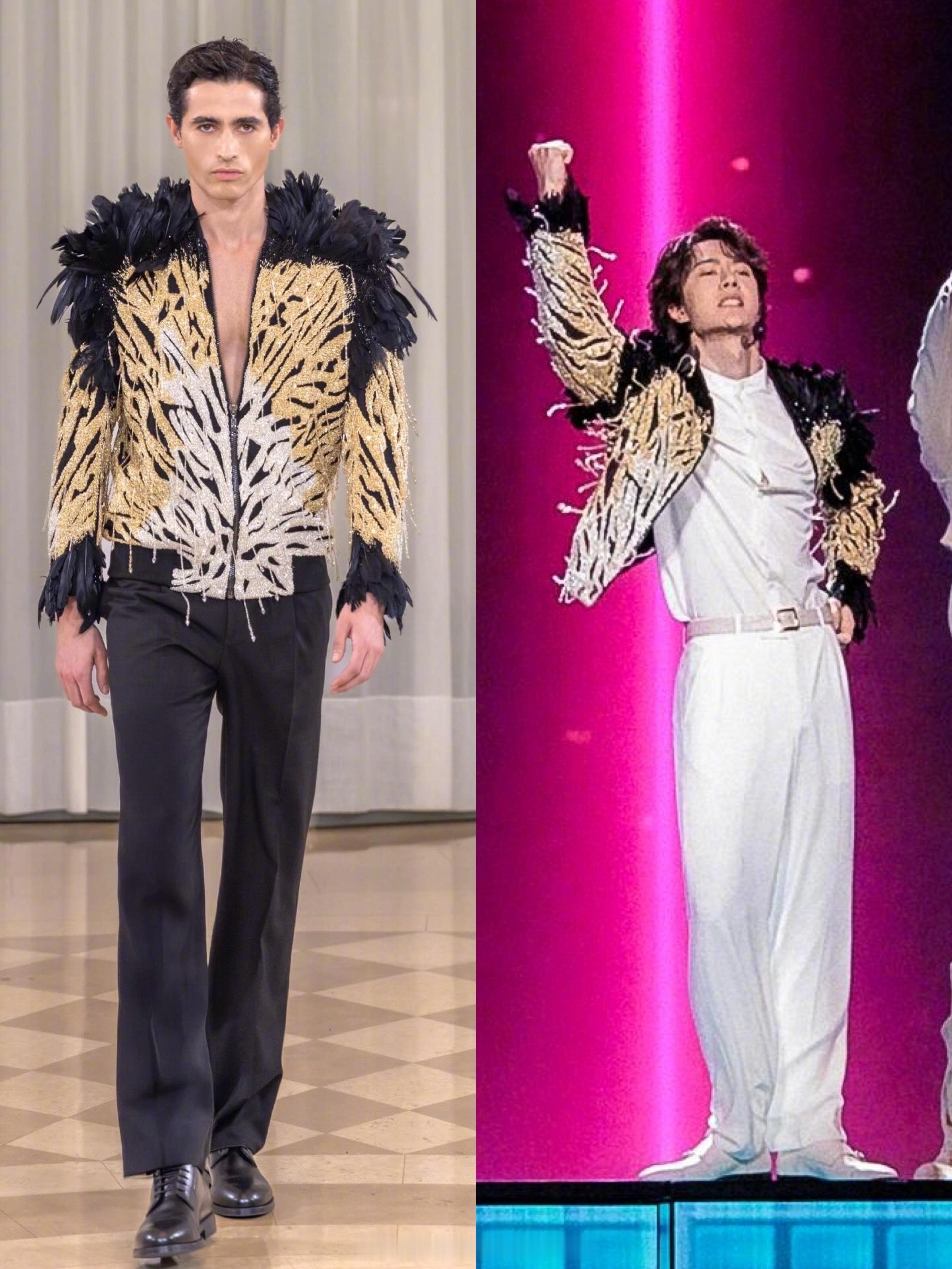 王一博今晚的央视马年春晚造型路透来了!他将身着刚刚发布的Saiid Kobeisy 2026春夏定制系列羽毛刺绣夹克,搭档天王郭富城共同带来唱跳节目《闪耀动起来》。