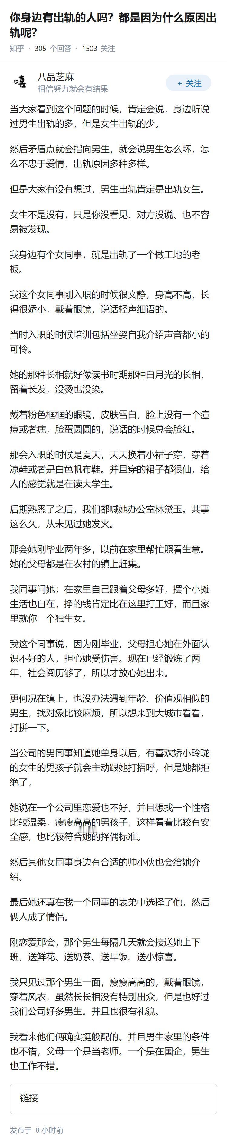 你身边有出轨的人吗?都是因为什么原因出轨呢?