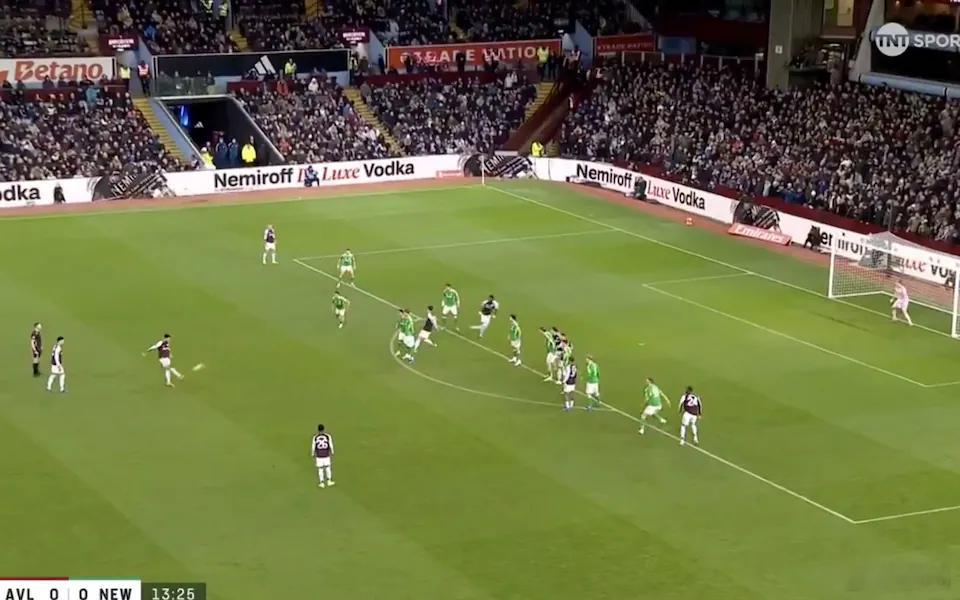 阿斯顿维拉vs纽卡斯尔 维拉的任意球设计妙到毫巅!本来站在球前面的是罗杰斯,一般弧顶位置任意球都是他罚。道格拉斯-路易斯背对球门走向皮球,看起来他想重新站好主罚,突然路易斯半转身来了搓传,小弧线越过人墙,亚伯拉罕胸部停球后巧射入网。慢镜头显示,亚伯拉罕疑似越位。但这场足总杯比赛没有VAR,所以,裁判第一时间判了进球有效,没法审看了。