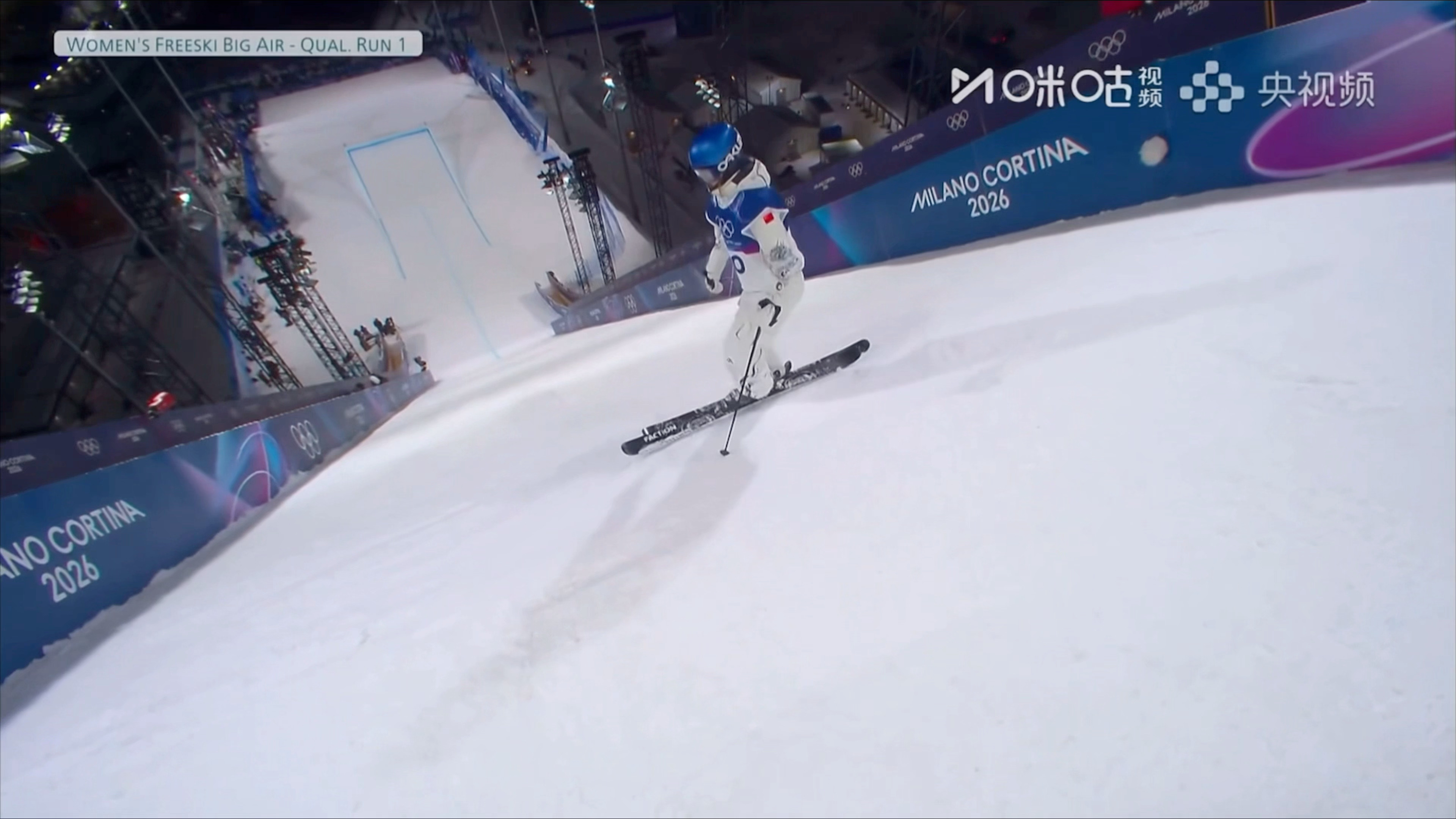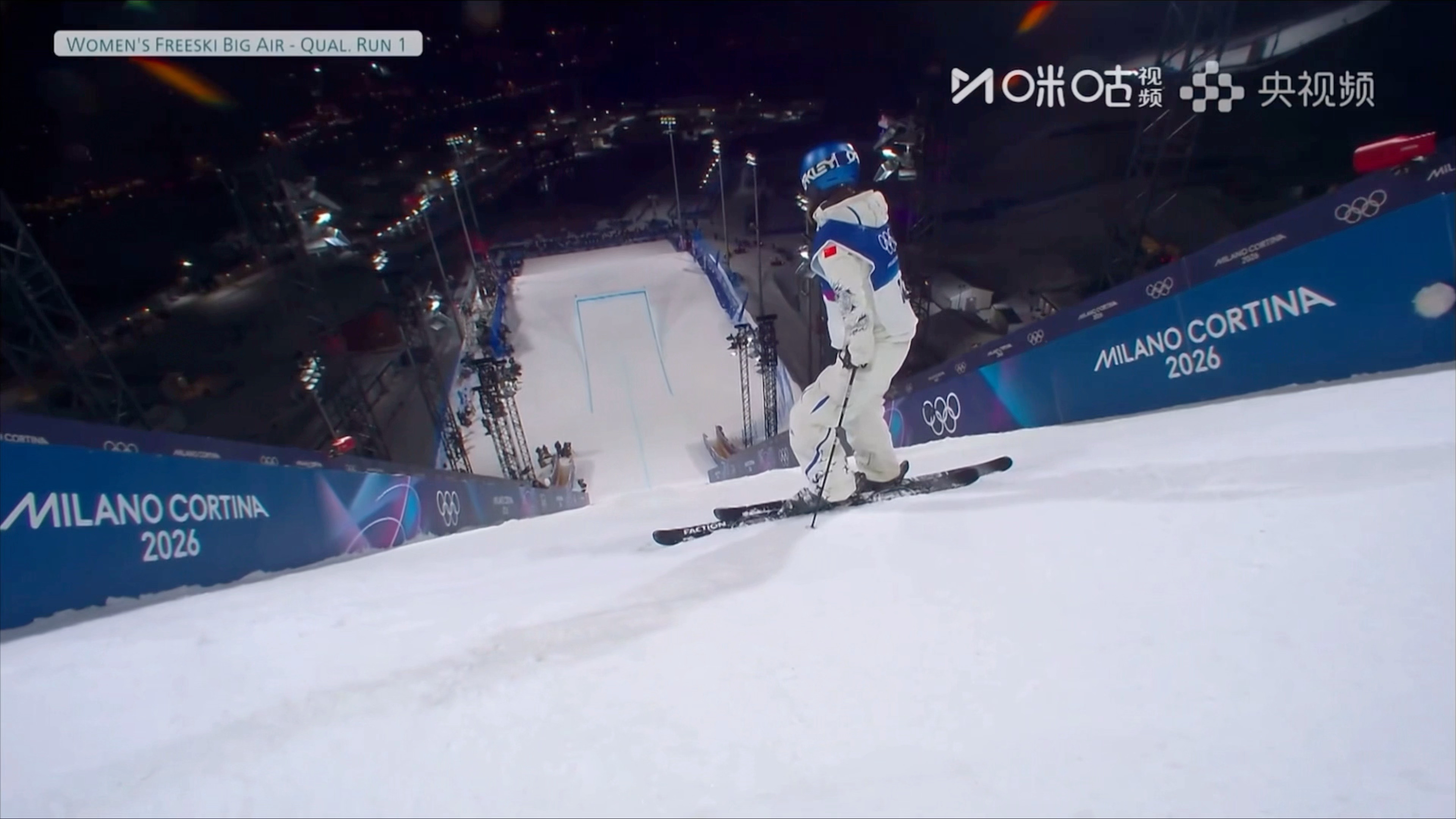 谷爱凌第一跳86.00分这个角度看下去也太恐高了自由式滑雪女子大跳台预赛