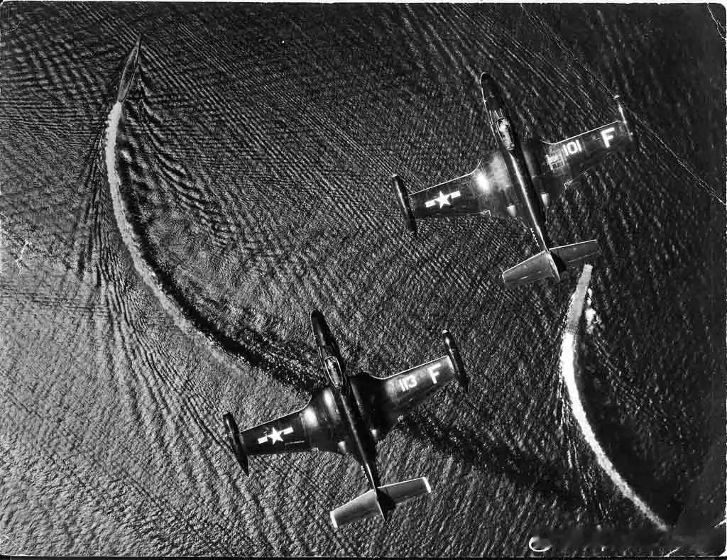 美国海军第22战斗机中队的F2H“Banshees女妖”战斗机编队,随CV39 USS Lake Champlain“尚普兰湖”号航空母舰和BB-62 USS New Jersey“新泽西”号战列舰编成的第77特混编队,启程对朝鲜实施打击行动军事历史全触达