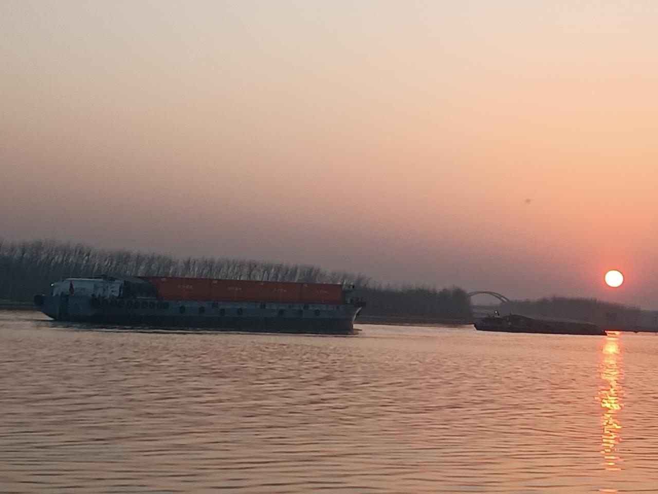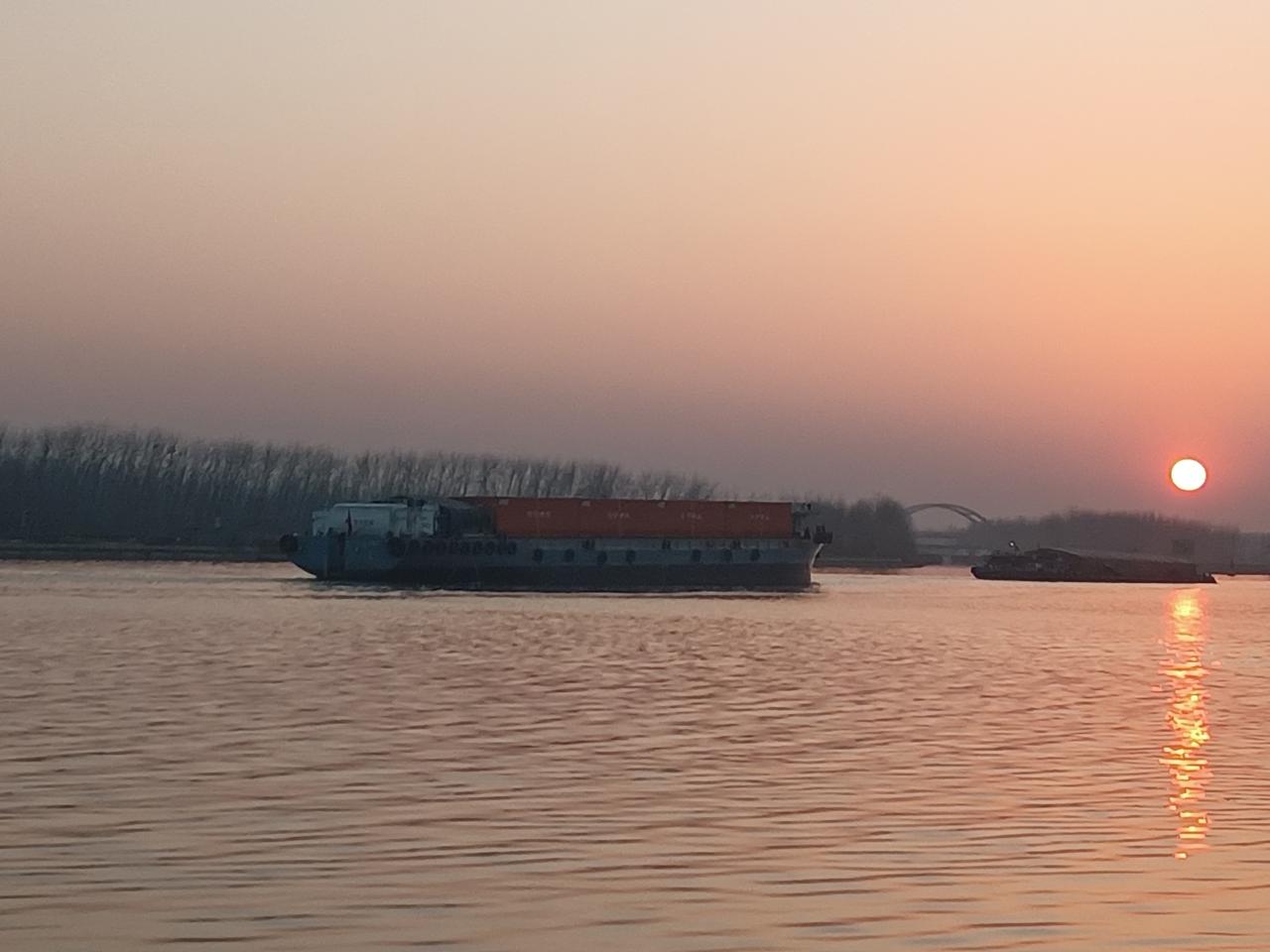 2月14日腊月二十七天气晴朗,气温融合。夕阳无限好!(图片来源:老山兰京杭大运河畔随手拍)