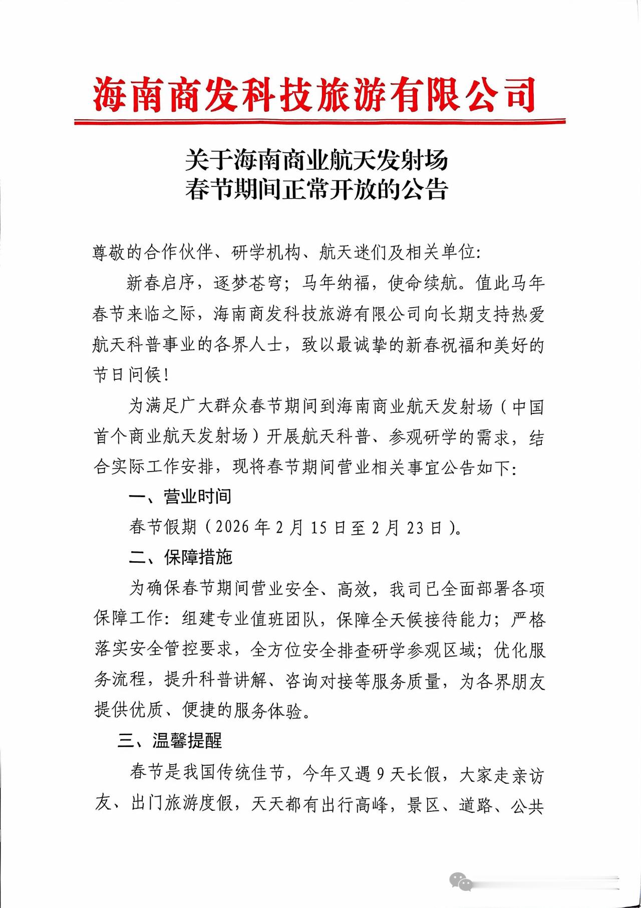 欢迎您春节春节摄影大赛 来海南的商业航天 发射场打卡,拍照📸哟!【公告 | 关于海南商业航天发射场春节期间正常开放的公告】