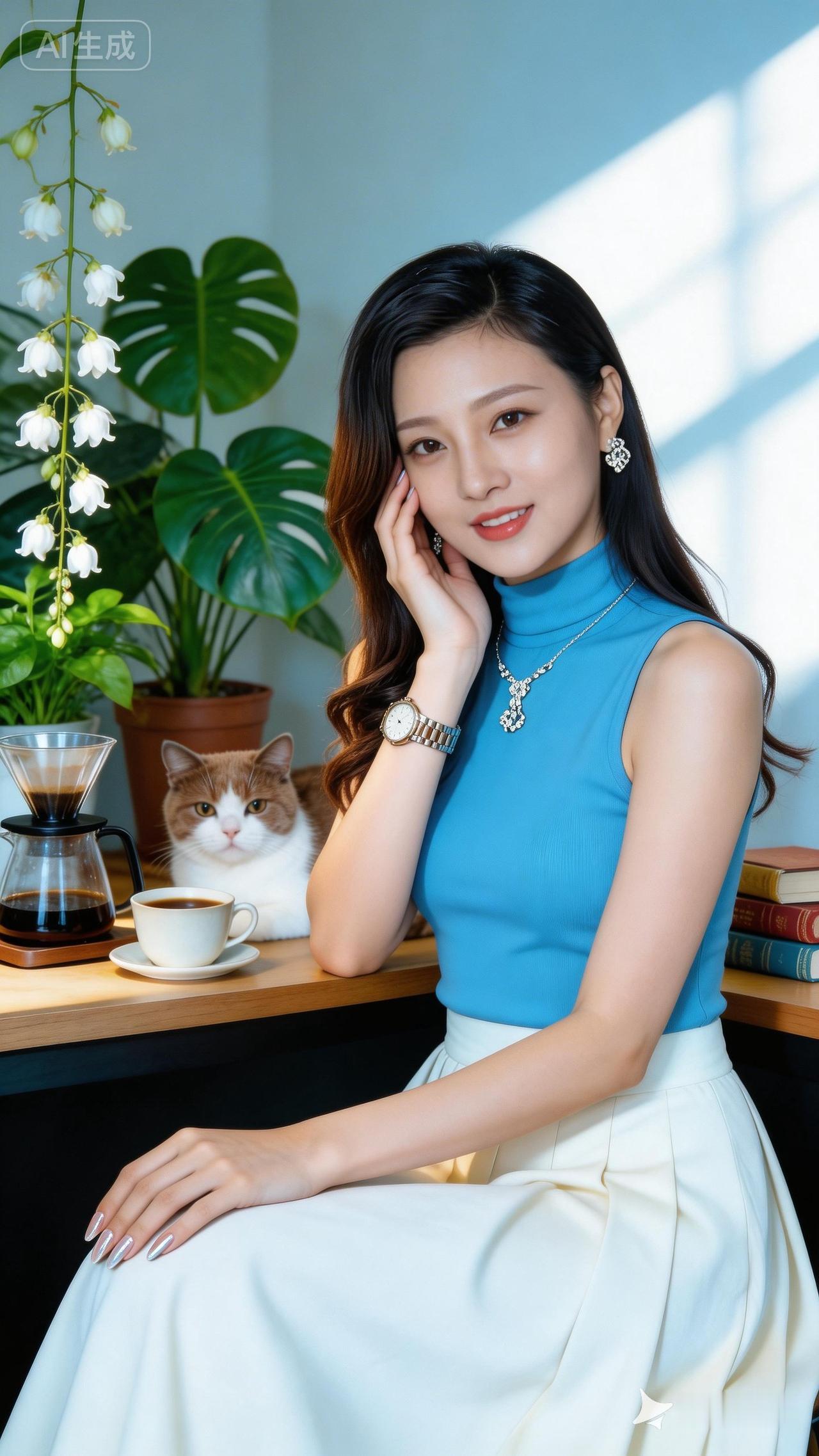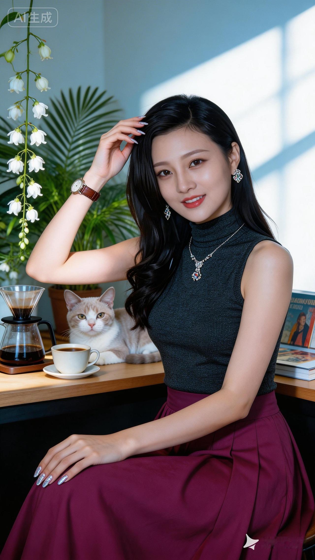 优雅咖啡时光,与猫咪相伴的宁静午后