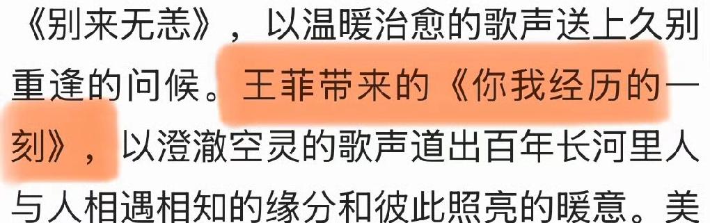 王菲太令人惊喜了!2月15日上午,一条重要的消息直接冲上热搜,王菲太令人惊喜了,她即将登上今年春晚舞台,演唱自己的全新歌曲《你我经历的一刻》。 要知道,王菲已经好几年没有新作品面世,这次突然宣布春晚献唱新歌,实在让人意外,消息一出,粉丝们瞬间沸腾了! 说起来,王菲和春晚的缘分真的很深,98年她和那英合唱《相约一九九八》,10年独唱《传奇》,2012年和陈奕迅合作《因为爱情》,2018年再次和那英同台演唱《岁月》……每一次都是经典中的经典。 而这次,王菲太令人惊喜了,不仅登台,还要唱新歌,《你我经历的一刻》光听歌名就很有故事感,很符合王菲一贯的风格,空灵的嗓音配上深情的歌词,想象一下春晚舞台上的画面,已经让人起鸡皮疙瘩了。 王菲太令人惊喜了,这次的新歌绝对是今年春晚最大的看点之一。 期待除夕夜,听王菲用歌声讲述《你我经历的一刻》!