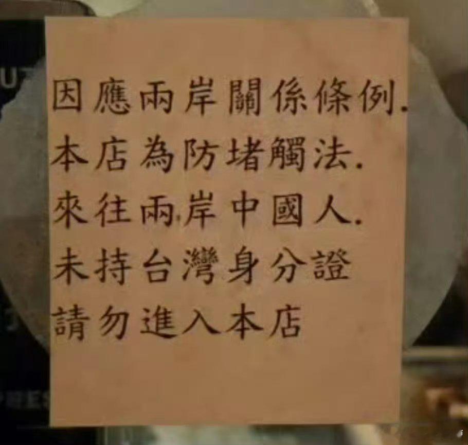 台湾省台北市某家烤肉店贴出告示声称没有台湾身份证不让进