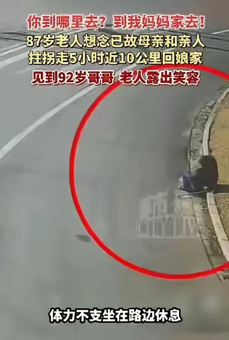 看哭了!江苏icon,87岁老人瞒着家人,凌晨5点偷偷拄拐杖出门,徒步近10公里、耗时5小时,只为回娘家见一见亲人,结果走到半道时,因体力不支不得不坐在国道边休息。民警询问时,老人:“到我妈妈家去,我想我妈妈了。”一句话让人泪目!网友:原来人不管多大年纪都会想自己的妈妈呀! 很多人年纪越大,心里越惦记的还是小时候那个家。 明明自己已经当了爷爷奶奶,在别人眼里是长辈,可在心里,依旧是那个需要妈妈的孩子。 生活里有太多身不由己,年轻时忙着养家,老了又被各种事情牵绊。 心里的念想藏了一年又一年,不敢说,也怕给孩子添乱,只能自己悄悄行动。 有人身边亲人齐全,却很少主动回去看看。 有人想见一面妈妈,连机会都没有,只能把思念藏在心里,一辈子都放不下。 年龄从不是阻挡思念的理由,也不是淡化亲情的借口。 妈妈在,家就在,这句话放在多大年纪的人身上都适用。 我们总以为日子还长,还有很多时间陪伴,可一转眼,可能就是一辈子的遗憾。 多陪陪身边的老人,他们要的不是钱财,不是礼物,只是一句关心,一次陪伴。