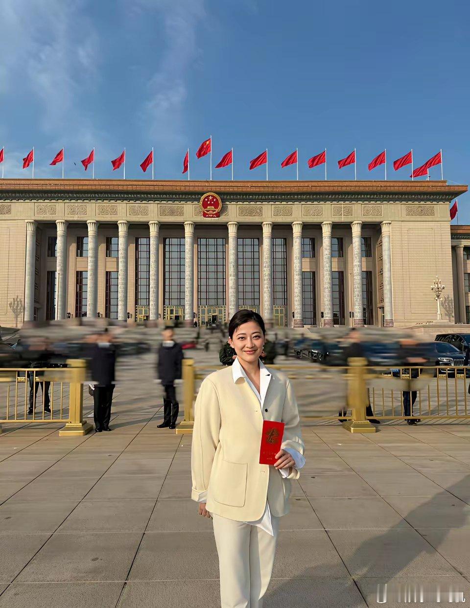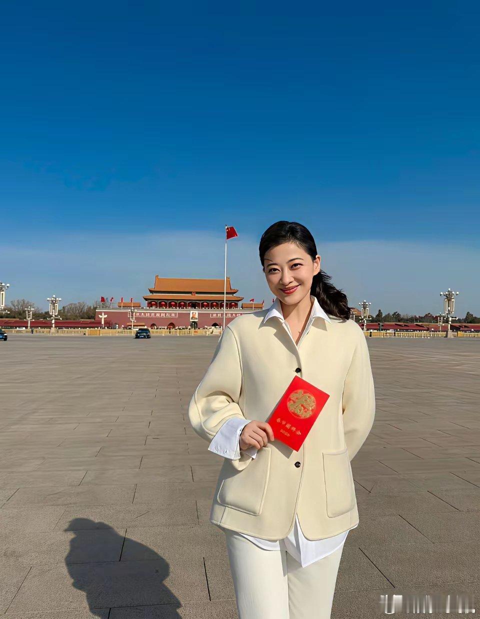 梅婷,太激动了!2月14日,一向低调的演员梅婷,突然罕见的高调发文,简单13个字,却饱含了激动和骄傲之情:“祝福我们强大的祖国越来越好!”照片里,梅婷一身米白色休闲西装,手里拿着红色证件,在天安门广场和人民大会堂前笑意盈盈,状态松弛又端庄。她还晒出了人民大会堂内那幅著名的《江山如此多娇》巨幅国画,背景里的国徽和红旗,让这组照片的分量感一下就拉满了。有眼尖的网友发现,当天正是2026年春节团拜会的日子,易烊千玺等多位文艺界代表也现身人民大会堂。梅婷作为资深演员,能受邀参加这样的国家级活动,既是个人荣誉,也体现了主流对她演艺事业和社会影响力的认可。
