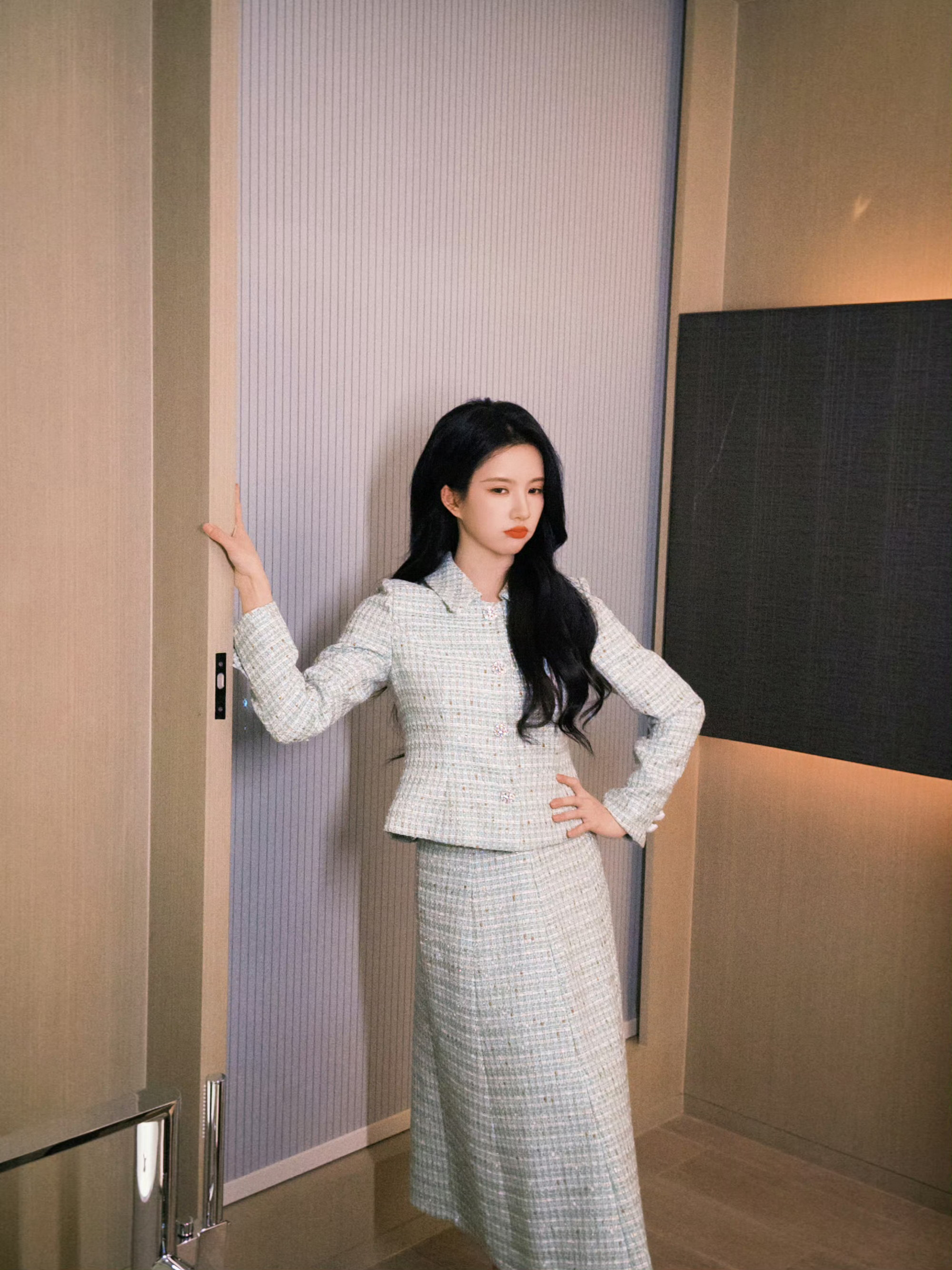 刘浩存的头真的小,腿也是真的长,觉得她的比例真的蛮好的,怪不得一出道,就能上大屏