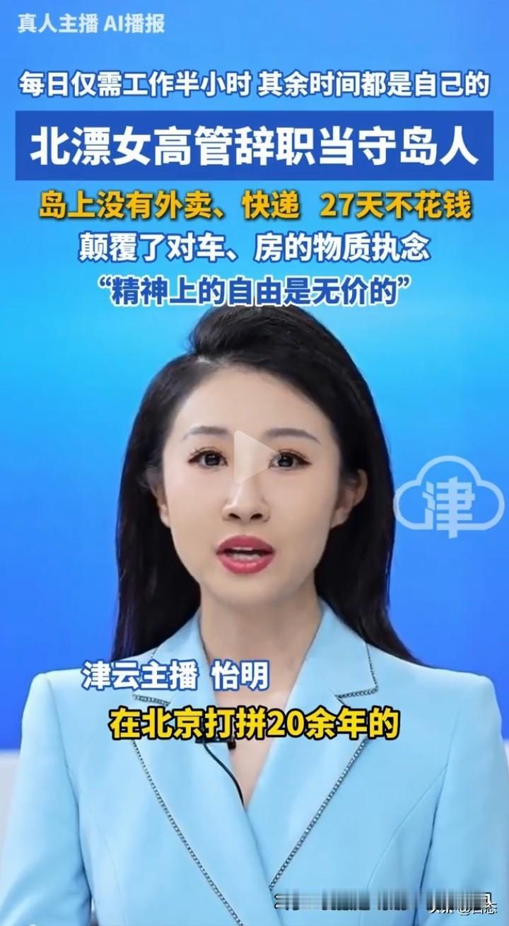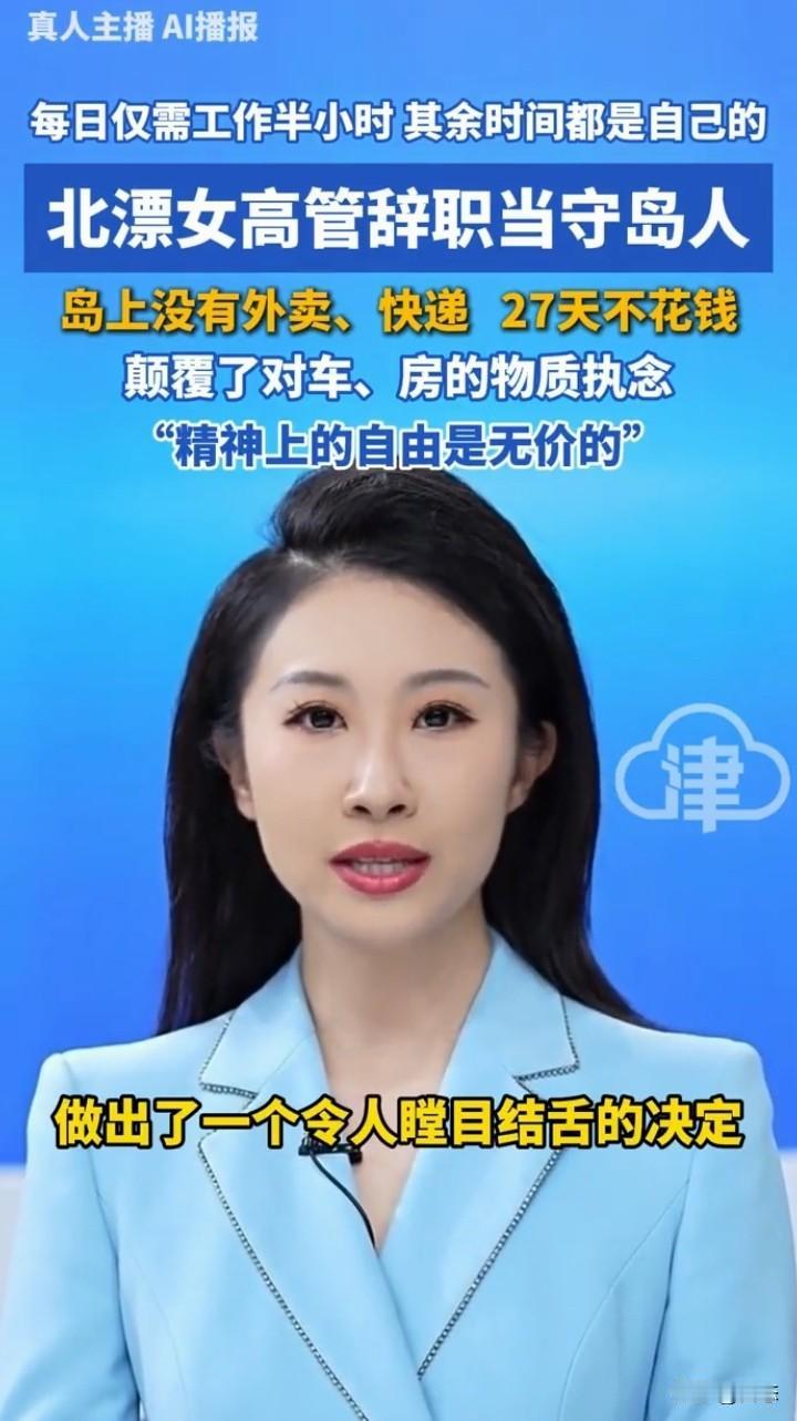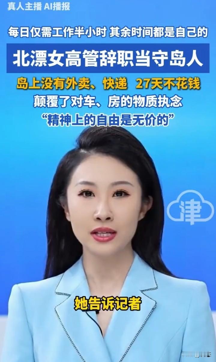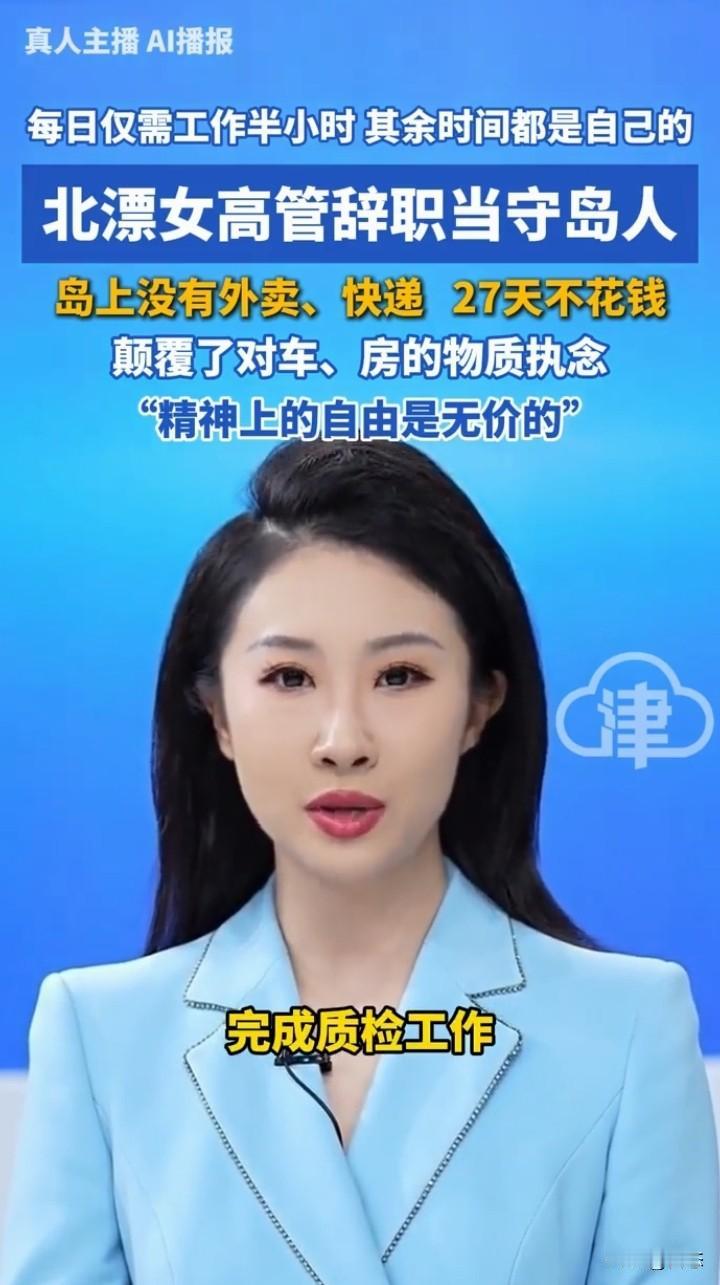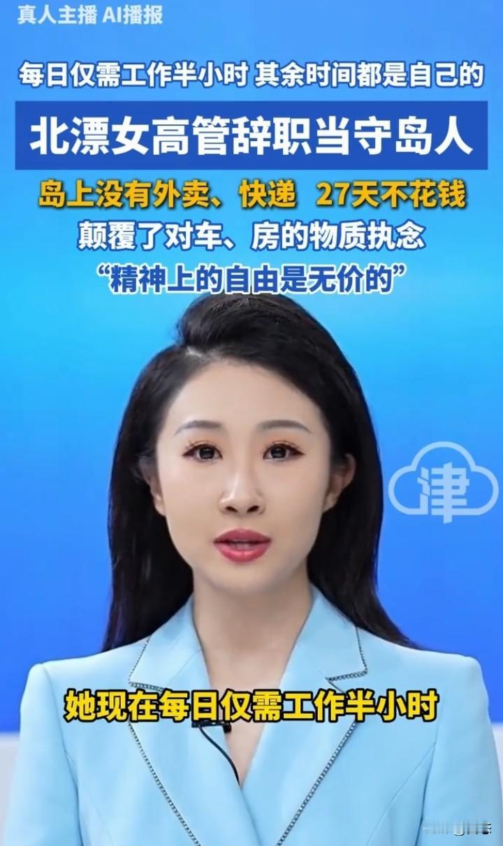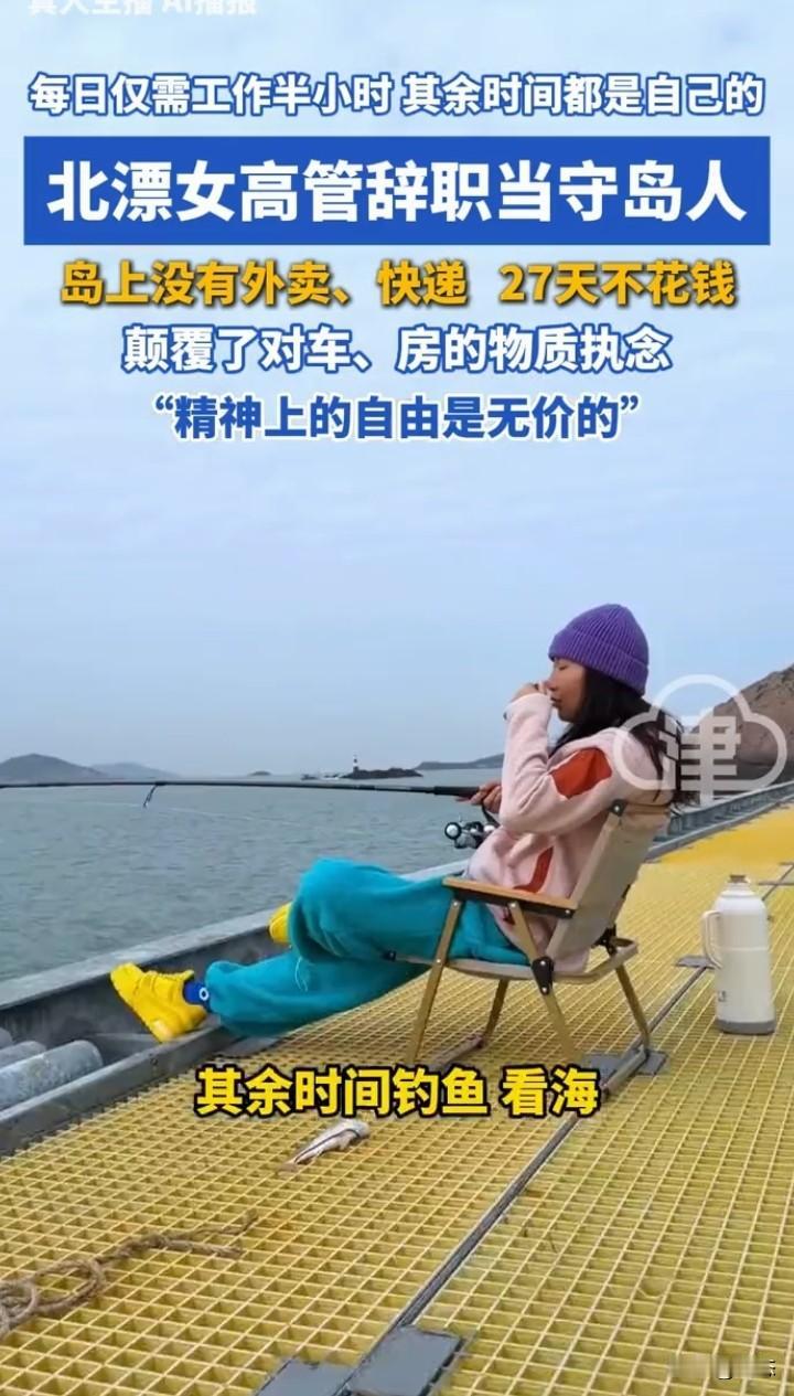 北漂女高管放弃在北京打拼20余年的工作,去当守岛人。岛上没有外卖,也没有快递,27天不花钱。每天只工作半小时,完成质检工作。而其余的时间都是自己的自由时间。颠覆了了对车,对房得物质执念 ,精神上的自由是无价的。 看到这,我相信很多人都会羡慕他的生活方式,过久了灯火辉煌的生活,过一过平静的生活也为常不可。放空自己! 你们喜欢这样的生活嘛?