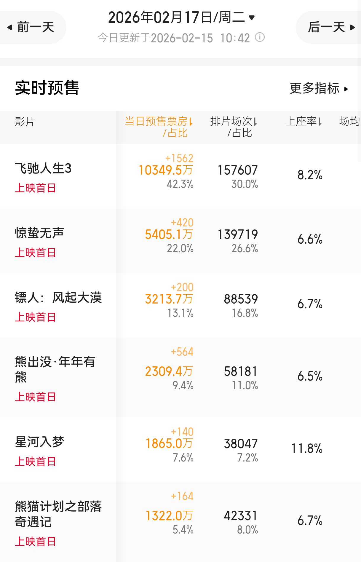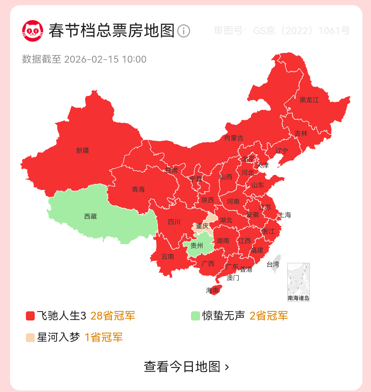 报!《飞驰人生3》又拿下一个省:湖南春节档28省预售票冠达成!大年初一当天的首日预售也破亿了排片量一直没有明显增加,一直处于排片不足的状态,只能说飞驰3还是太体面了