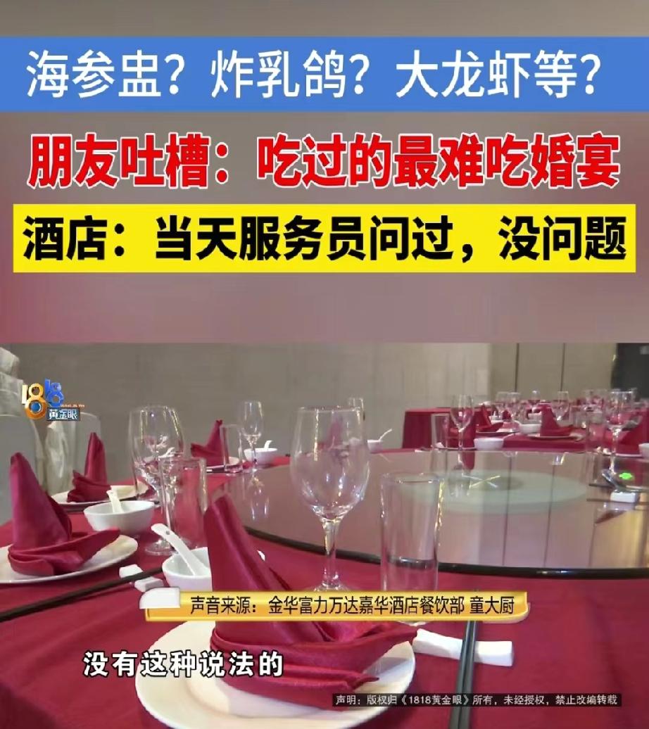 太糟心了!浙江金华,女子特意选了一家高档酒店办婚礼,一共摆了11桌婚宴,每桌39