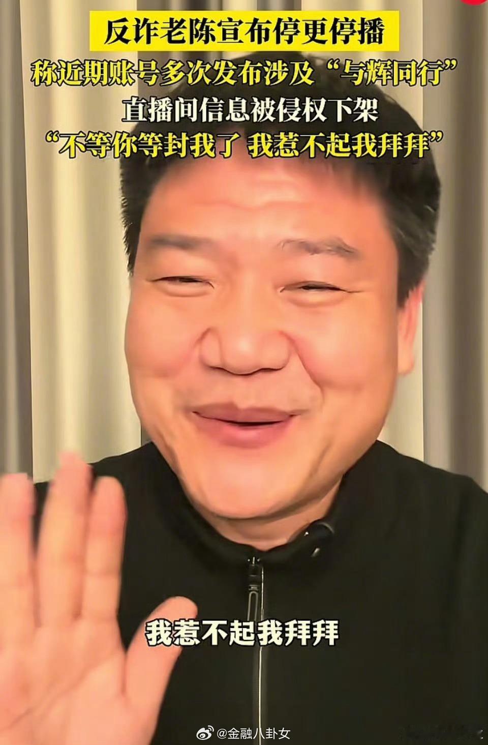 反诈老陈宣布停更停播,称多个涉及董宇辉直播间争议视频被举报下架,惹不起躲得起