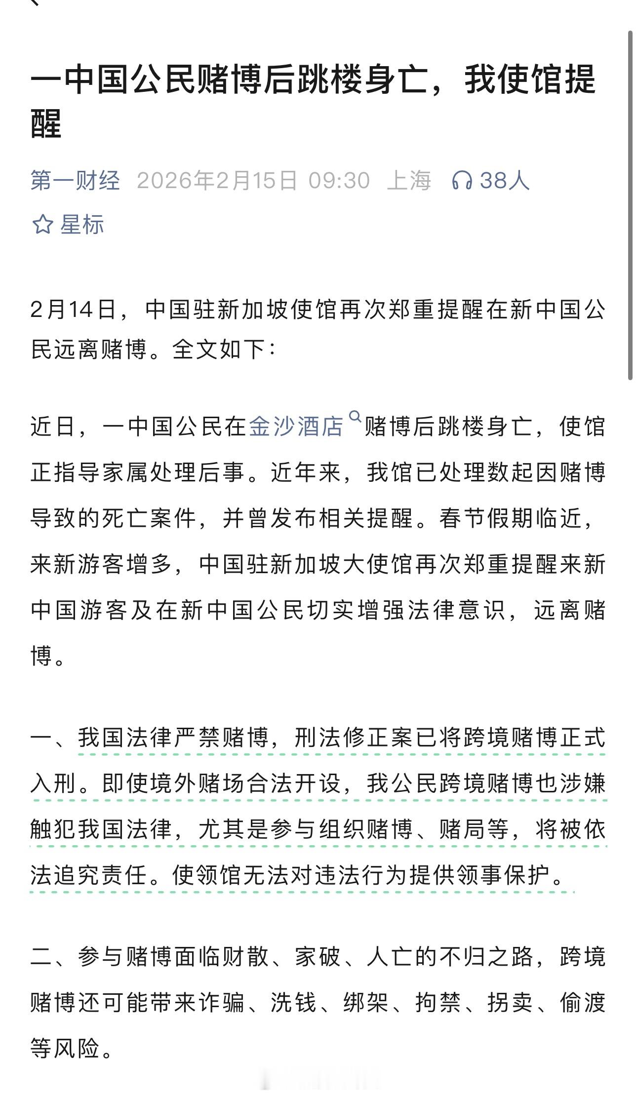 一中国公民在新加坡金沙酒店赌博后跳楼身亡一中国公民在新加坡赌博跳楼身亡