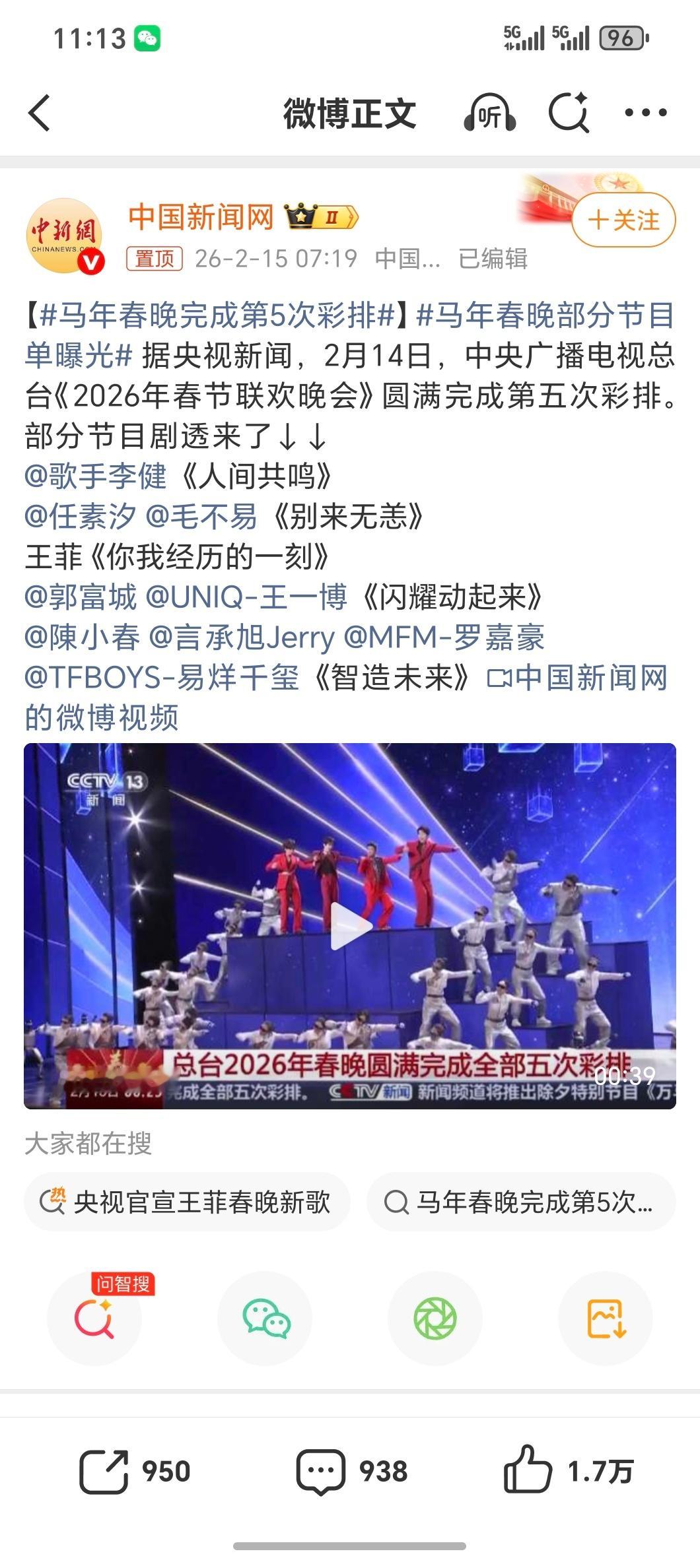 马年春晚部分节目单曝光往年这个时候节目单是不是都发了今年的春晚保密做得还挺好呀大家目前最期待哪个节目?