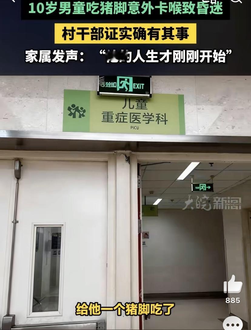 最近一则新闻让很多人心里揪得慌,成都一名十岁男童吃猪脚时被肉块卡住喉咙,家人发现