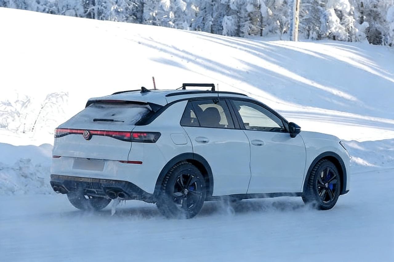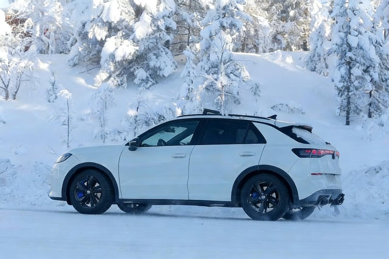 新款大众T-Roc R 测试谍照 黑化宽体+四出排气 外观上,前脸 黑化蜂窝格栅 带R标+贯穿LED灯带,两侧进气口加大+黑色獠牙饰条。 IQ.LIGHT矩阵LED大灯 造型狭长 带动态照明,下面是菱形网状散热结构。 侧面,悬浮式双色车顶 可选纯黑车顶, C柱粗壮 预计印有R标,预计配20英寸亮黑色轮毂+高性能轮胎 蓝色R标卡钳,侧裙黑化、轮眉加宽。 车尾,熏黑π字形贯穿尾灯,车标可亮,高位扰流板带刹车灯。 双边四出 声浪可调节+大尺寸扩散器,后包围用多层亮黑面板。 前唇 侧裙 尾部扩散器均做风洞优化 扰流板能减少高速行驶升力 动力上,预计2.0T EA888 Evo4发动机 和高尔夫R同款,最大333马力,最大扭矩420牛米。 7速湿式双离合变速箱,标配4MOTION全时四驱 支持弹射起步。 零百加速约4.6秒-4.9秒,预计极速250km/h 。 预计可选装天蝎钛合金排气 减重7公斤 竞赛模式声浪更大。 基于MQB Evo平台打造 悬架针对SUV重心优化 车身降低 支撑性更强。 预计有经济、舒适、运动、竞赛、自定义五种驾驶模式 四驱可主动分配前后轴扭矩。 最后,新款大众T-Roc R 的主要亮点: EA888 Evo4 2.0T 333马力 420牛·米,7速湿式DSG+4MOTION四驱,零百加速约4.6秒-4.9秒。 黑化蜂窝中网+R标、贯穿LED+发光车标、獠牙饰条、20英寸亮黑轮毂+蓝色R卡钳、双边四出天蝎排气+大扩散器。 MQB Evo平台,车身降低、悬架强化,侧倾抑制。 短板:虽然优化了 车身和重心,但极限操控不如纯钢炮。 扩散器、扰流板更多是视觉效果,高速下压力提升有限。 内饰预计Alcantara、碳纤维等高级材质大概率要选装。