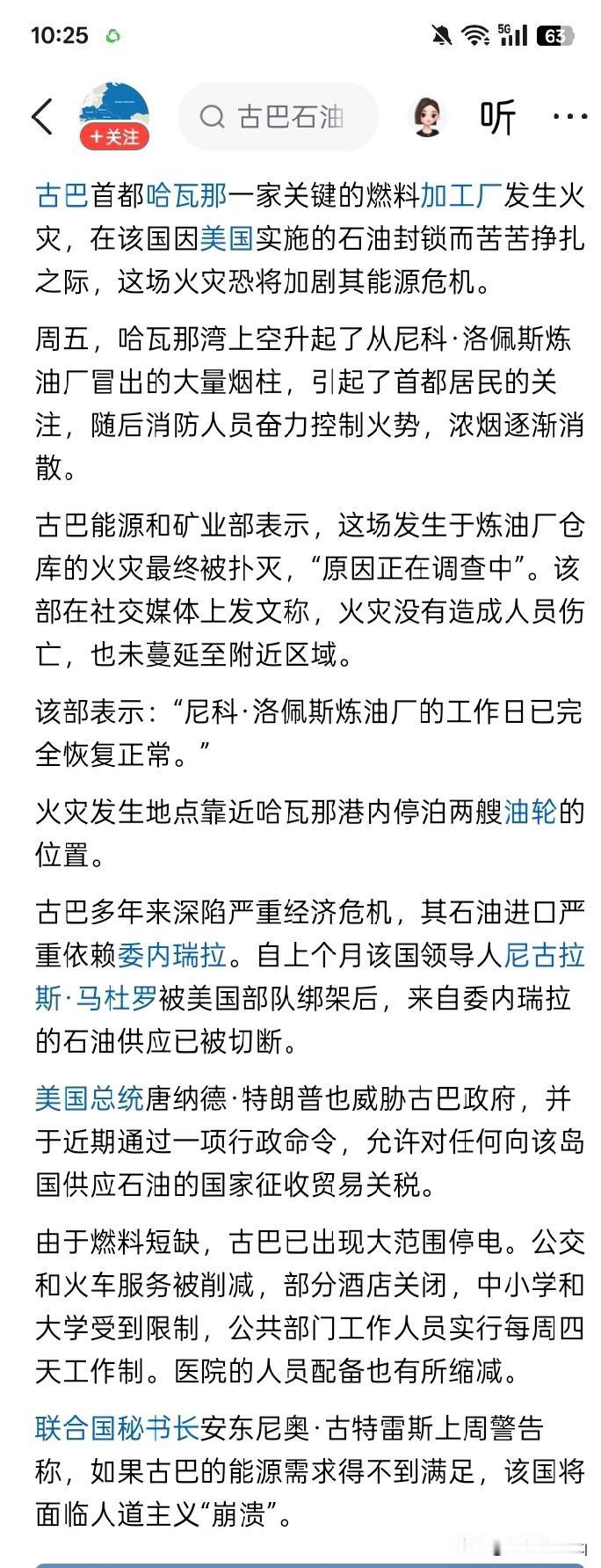 多灾多难? 由于美国好像严重敌视和封锁古巴,古巴的石油供应已经中断了一段时间,除了机场和一些加油站已经无油可供之外,供电厂发电的燃油也是处于岌岌可危,可能是在不久后就有告罄的严峻形势下。虽然有消息声称,俄罗斯将援助古巴石油,但具体是个什么情况,什么时候才能将石油运送到古巴,目前没有任何可靠的消息。 然而,真的似乎是福无双至祸不单行。古巴首都哈瓦那的尼科·洛佩斯炼油厂又突发火灾。据有消息说,这场大火是从炼油厂的仓库燃起的,起火原因目前还不清楚。 这场火灾无疑是对古巴的又一次、可能还是很大的打击,让燃料油原本就十分严重紧张的形势雪上加霜,更加紧张。那么,为什么在燃油如此紧张的情况下,还会在炼油厂这样十分敏感的地方发生火灾?估计这才是这场不期而遇的火灾,存在的最重要的问题。