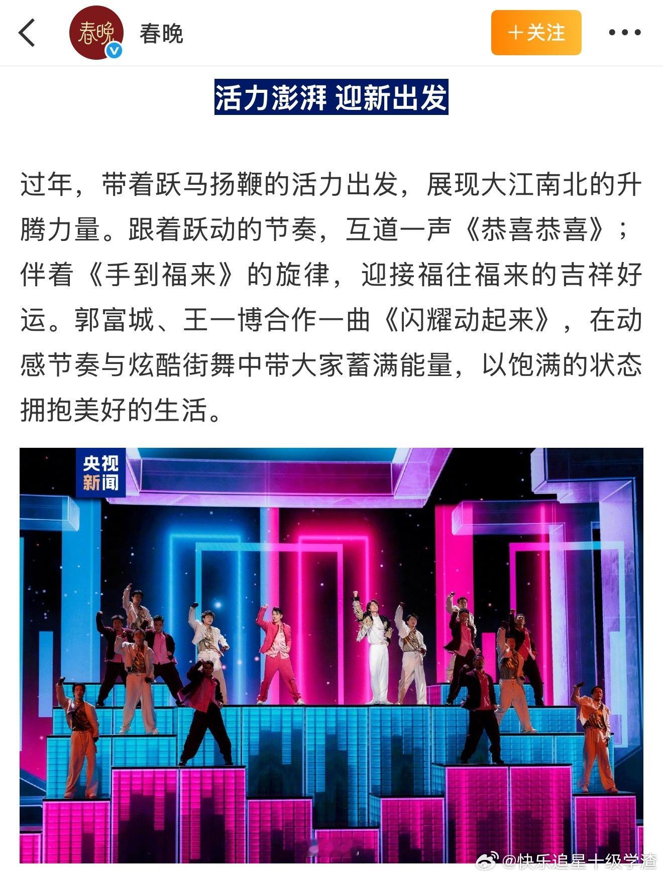 春晚预告王一博和郭富城《闪耀动起来》的合作舞台 这也是博帝第三次登上春晚