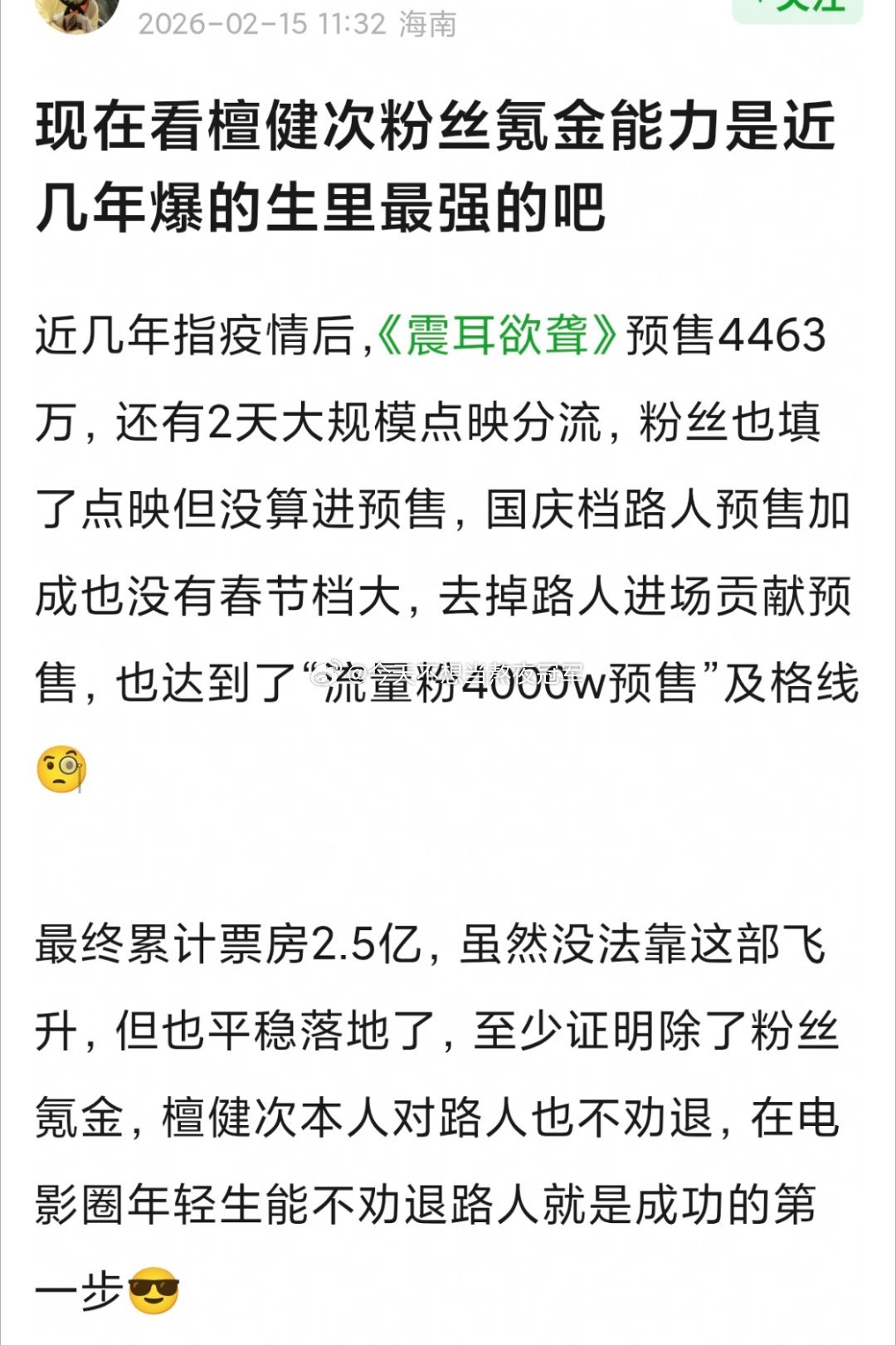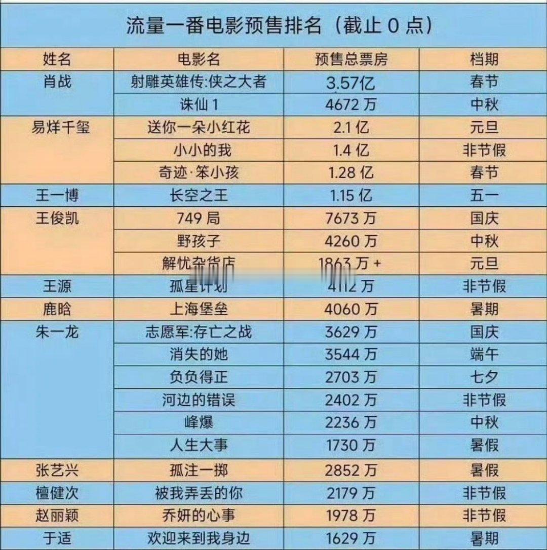 观春节档流量几部流量电影预售有感,有网友问,近几年新爆流量🥜里一番预售最能打的是不是檀健次?