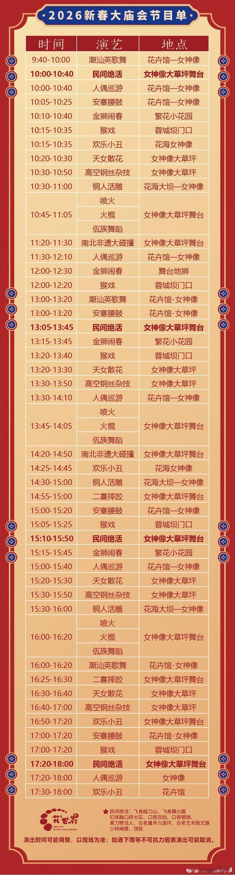 【赏花海、逛非遗,祥源花世界2026新春大庙会即将启幕】锣鼓喧天迎马年,非遗焕彩贺新春。2026年丙午新春之际,合肥祥源花世界将于正月初一至正月十五盛大举办“2026新春大庙会”。本次庙会以“南北非遗同台PK、百场演艺全天不断档、新春第一片郁金香花海”为核心,融合民俗、花海、市集等多元元素,为合肥及周边市民献上一场兼具视觉冲击力与文化厚重感的新春文旅盛宴。2026家乡年
