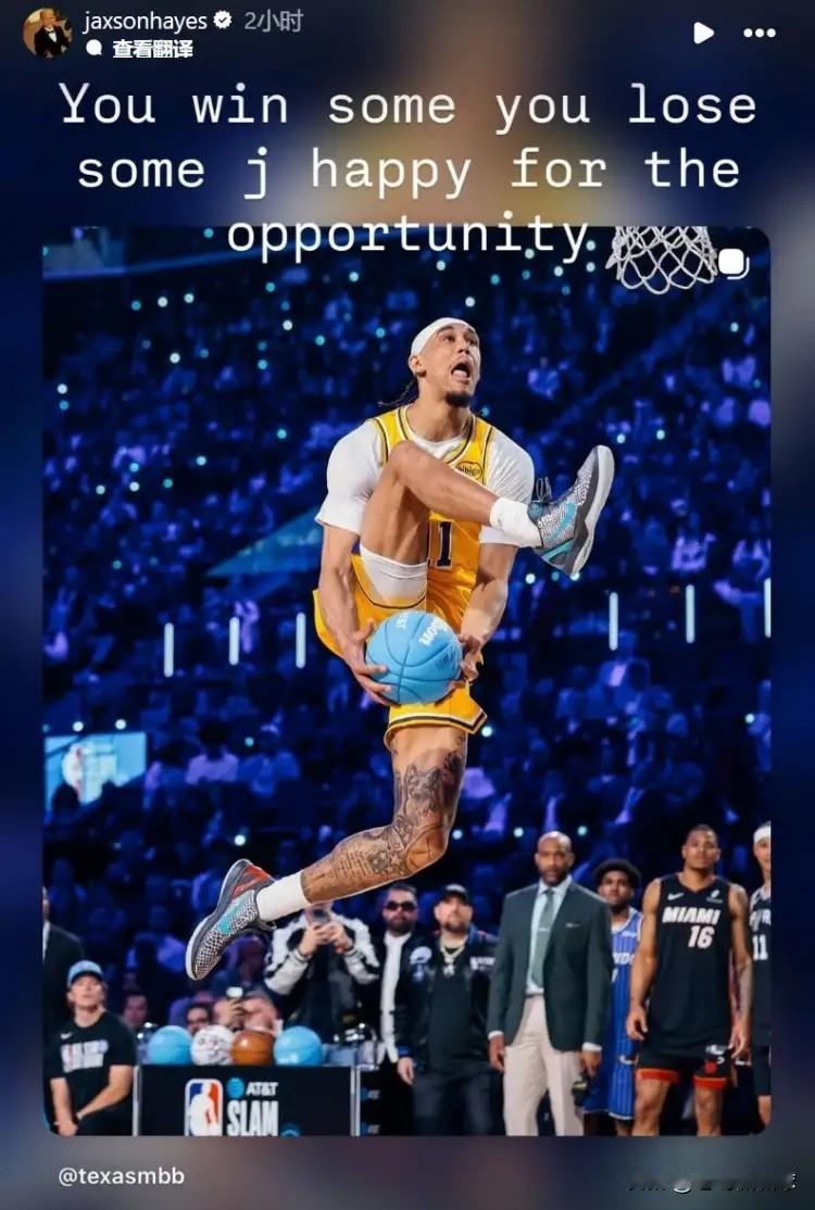湖人大将海斯真是太没脸没皮了!在今天结束的全明星扣篮大赛中,海斯的表现非常不如人意连最终的决赛都没有进入,然而这样的失利并没有对海斯造成任何的心理负担,他在赛后更新社媒晒出了自己的扣篮照片,并且配文道:“胜败乃兵家常事,我非常开心能够拥有这样的机会。” 老实说,海斯真是太没脸没皮了,他在今天的扣篮大赛中输的一败涂地,却把这样的惨败当成了平常事。
