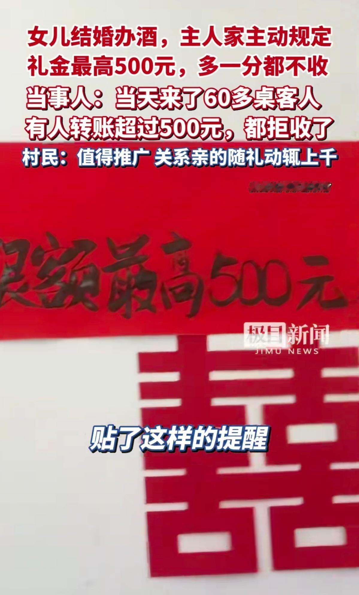 “礼金最高500元,多一分都不收!”四川泸州一场婚礼的告示,震动了十里八乡。村民杨先生直呼:“这辈子头回见!”主人家女儿出嫁,宴席摆了六十多桌,亲友们掏红包时却被告知:超过500元,一分不收!有人转账多给了,主人家当场退回。这场“限额婚礼”像一颗石子,搅动了当地“千金人情”的深潭。 泸州古蔺县,随礼动辄上千,甚至上万。张女士办喜宴前,曾为还礼愁得失眠:“别人送五千,我得咬牙回五千,钱包遭不住啊!”她和丈夫一咬牙:不管亲疏,礼金统统限500!消息传开,有人嘀咕“太抠门”,更多人却松口气——再不用为“面子”勒紧裤腰带。宴席当天,红包薄了,笑声却稠了。一位老伯拍着大腿笑:“这才是正经人情!穷人富人同席吃酒,不寒碜!” 无独有偶,陕西商洛也出手“限礼”:婚礼礼金不超300元,宴席每桌不超500元。政策与民意的默契,撕开了“礼金绑架”的口子。过去,礼金成了“人情债”,你送我五千,我回你八千,攀比成风,压得人喘不过气。如今,有人敢“立规矩”,像捅破了一层窗户纸——原来,人情不必用钱堆! 这场“限额革命”能走多远?有人担心:传统观念根深蒂固,真能刹住攀比风?但张女士的婚礼已给出答案:当有人率先打破枷锁,总有人愿跟风。毕竟,谁不想卸下“礼金包袱”,轻快地赴一场喜宴? 礼金,本是祝福的载体,何时成了丈量亲疏的秤?泸州这场婚礼,像一记警钟:当人情被金钱捆绑,温暖便成了枷锁。或许,这才是婚礼该有的样子——不是金钱的较量场,而是人情的温暖窝。你觉得礼金该限吗?评论区说说你的看法!