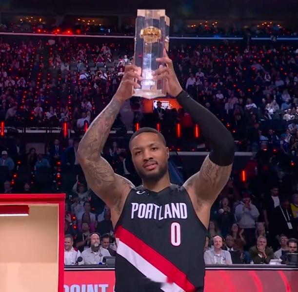利拉德真强!受伤休息一年还没有复出,参加三分球大赛还能夺冠,太强了!