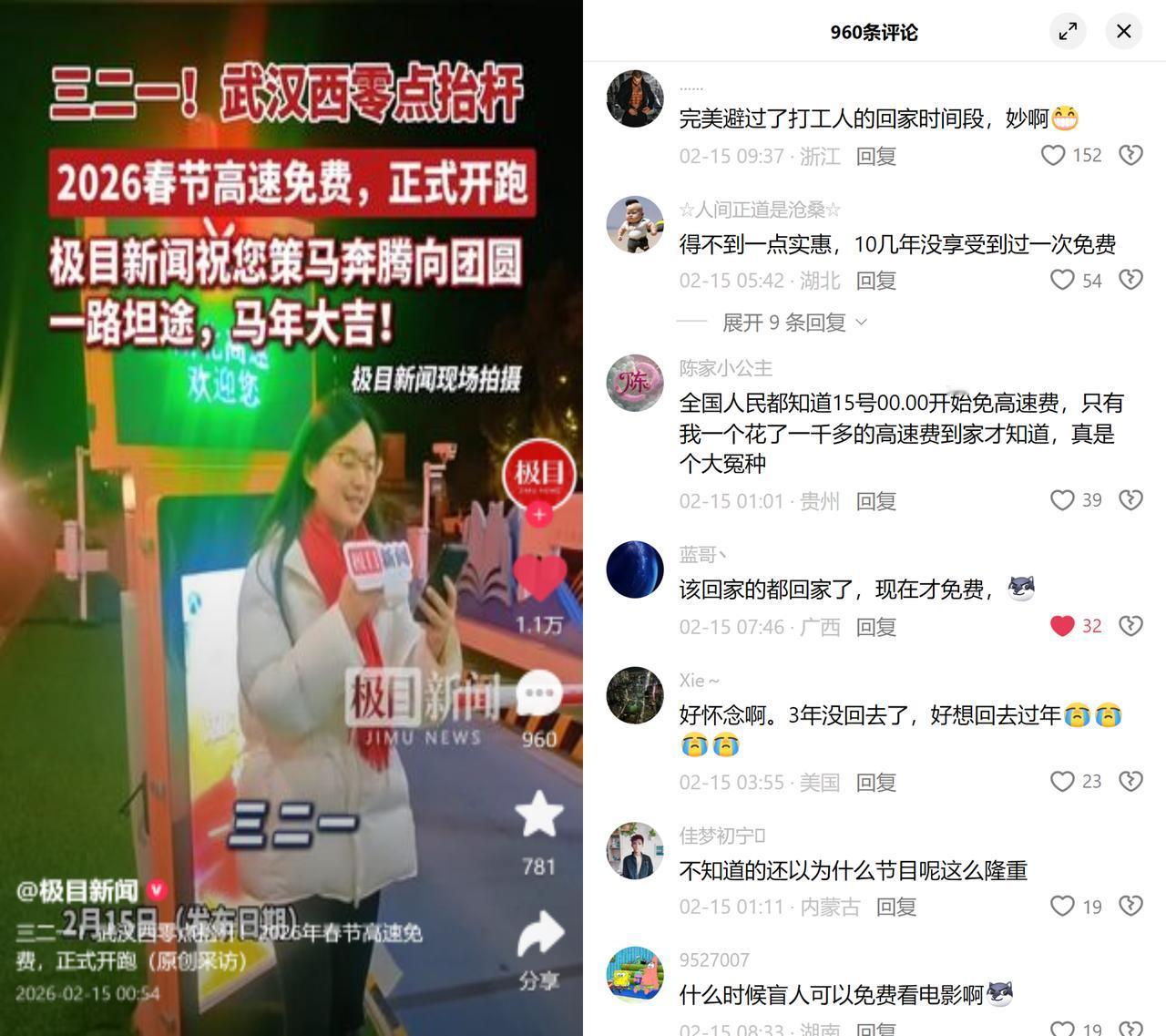 高速免费启动,我已到家3天! 腊月二十八零点,武汉西收费站搞起了高速免费启动仪式。可不少打工人为了避高峰,早在5-7天前就抢票、赶高速回了家,花了上千高速费,到家才知道免费开始了。 就想问制定规则的人,真的懂打工人的返乡难吗? 我们哪敢等到放假当天才动身?腊月二十八的票根本抢不到,高速堵到怀疑人生的经历谁没尝过?提前一周出发都是常规操作,结果免费掐点来,合着跟我们这些急着团圆的人没关系? 有人说政策得跟着日历走,可打工人的回家路从来不在规定时间里!我们花着血汗钱赶路,人家搞着仪式感庆祝免费,这反差感拉满了! 说到底,高速免费是为了让团圆更轻松,可现在反而成了精准错过打工人的尴尬。下次能不能多听听底层的声音?别再让我们花了钱还闹心了!