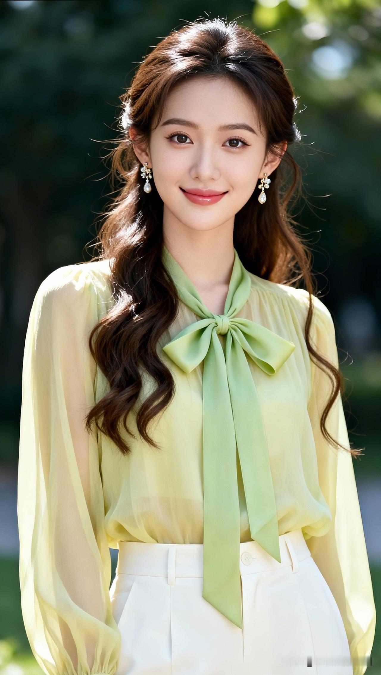 清新夏日穿搭,浅绿色蝴蝶结衬衫搭配白色高腰裤,甜美又优雅!氛围感出片穿搭