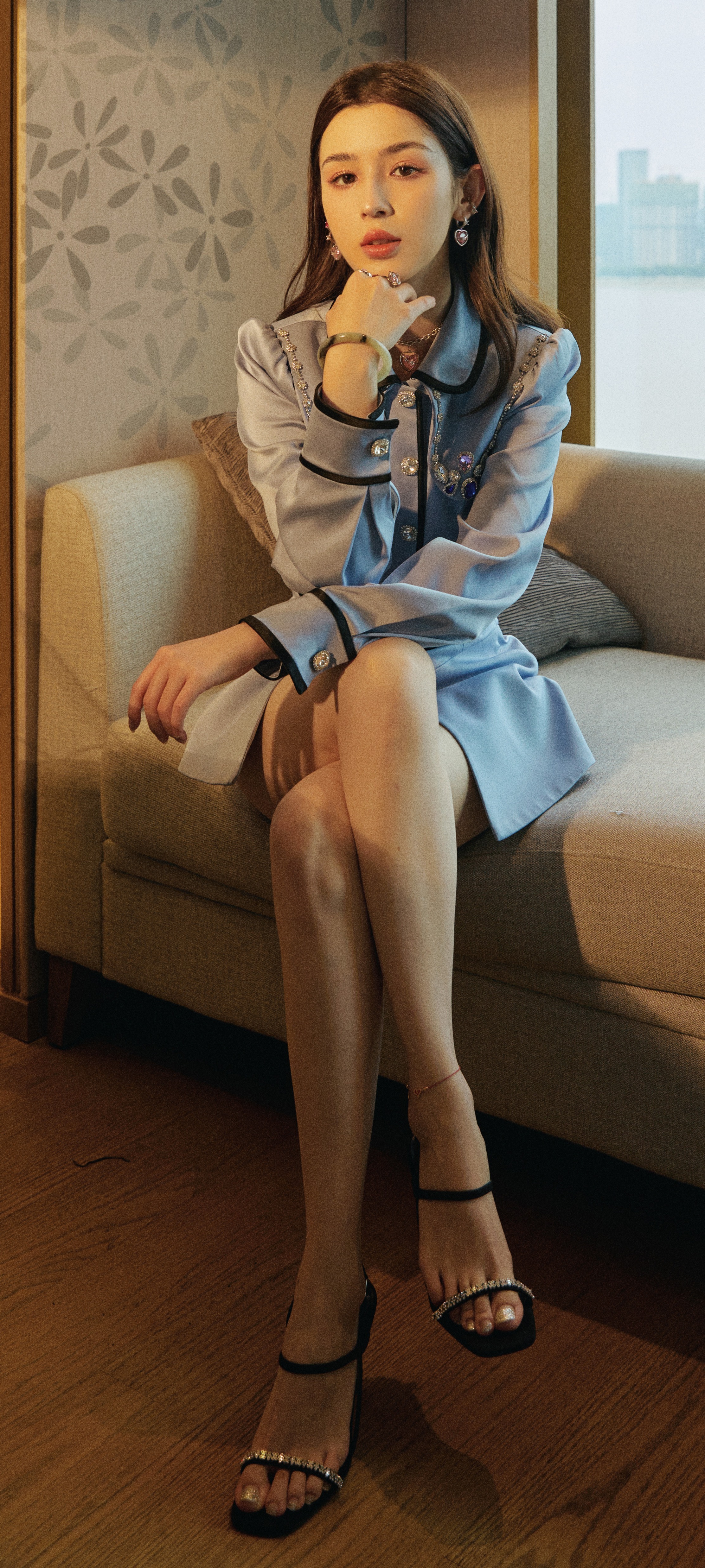 哈妮克孜穿搭壁纸,一组高跟美腿妆造美图。哈妮克孜
