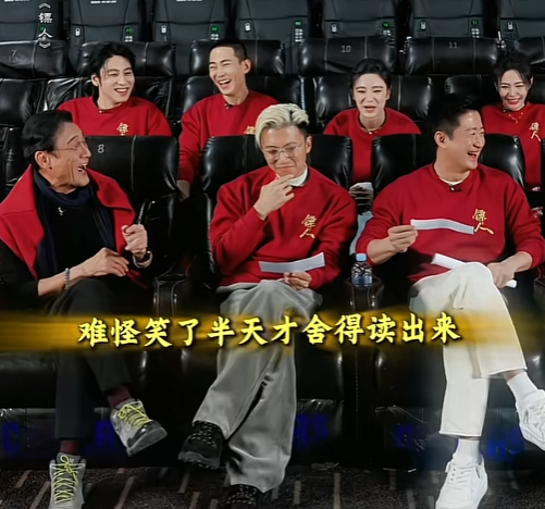 谢霆锋看到一条留言,突然面露笑容;坐在他两侧的梁家辉和吴京感到好奇,纷纷把目光集中到了纸条上。