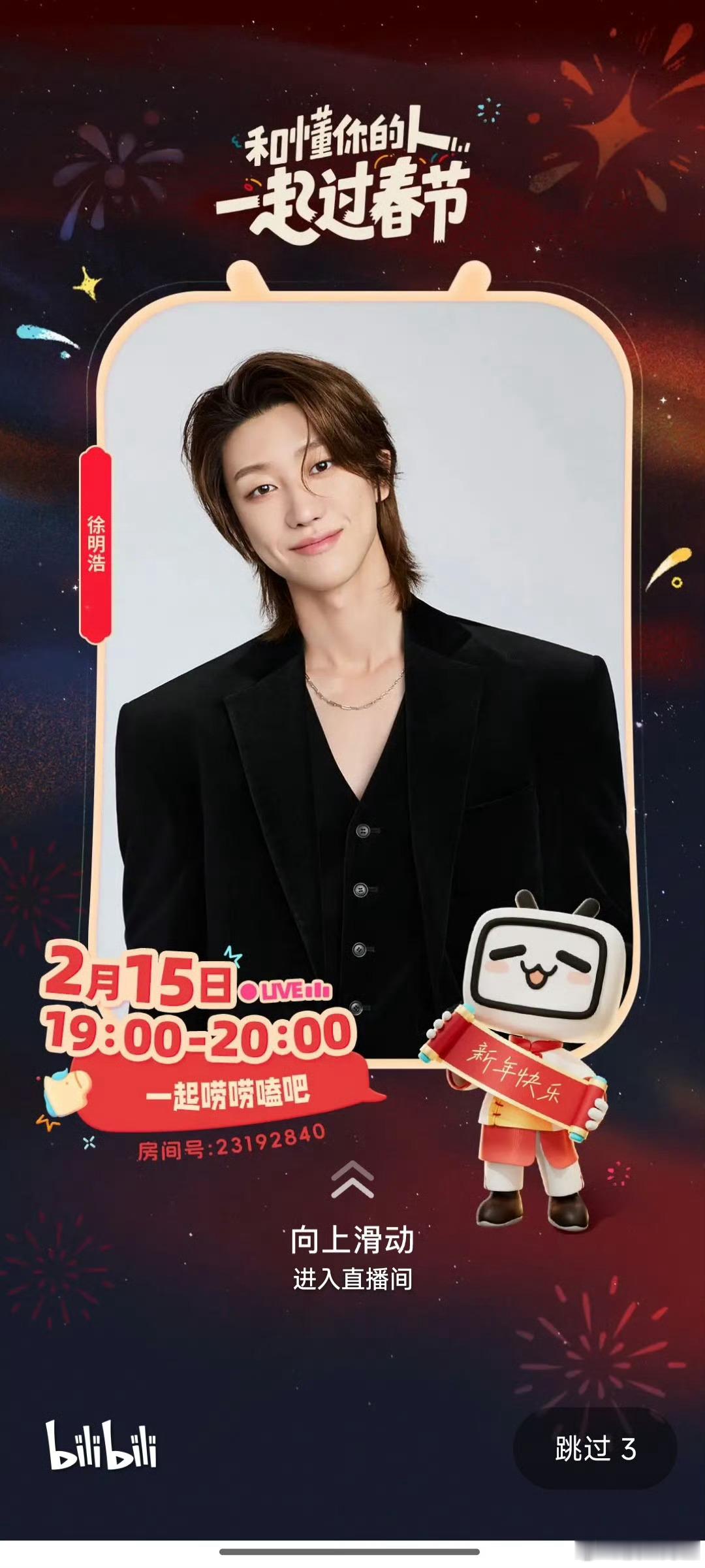 徐明浩春节唠嗑局 刷到徐明浩今晚B站直播开屏期待啦!今晚七点不见不散直播链接:网