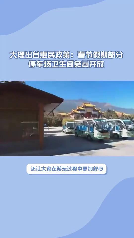 大理出台惠民政策:春节假期部分停车场卫生间免费开放。 2026年春节假期去大理玩的小伙伴们有福了,大理市内部分停车场和公共卫生间将免费向社会公众开放。这究竟是怎样的惠民政策?据了解,这次免费开放的停车场和卫生间涵盖了大理市辖区内的州、市级党政机关及事业单位,还有大理海东开发管理委员会以及各乡镇人民政府、街道办事处等符合开放条件的单位。 这些单位内部的停车场和卫生间在春节假期期间将全面向社会公众敞开大门,让大家出行更加便捷。不过这里也要提醒大家,已实行收费管理的停车场还是按原审批规定执行。这一政策的出台无疑给春节期间前往大理旅游的游客们带来了极大的便利,不仅解决了停车难的问题,还让大家在游玩过程中更加舒心。 大理作为旅游胜地,每年春节都吸引着大量游客前来,而这次免费开放停车场和卫生间的举措更是体现了大理对游客的贴心关怀。大理的这一惠民政策无疑为春节旅游增添了一抹亮色。大家是不是已经迫不及待想要去大理感受一下了?快来评论区分享你的看法或者分享你的大理旅游计划。