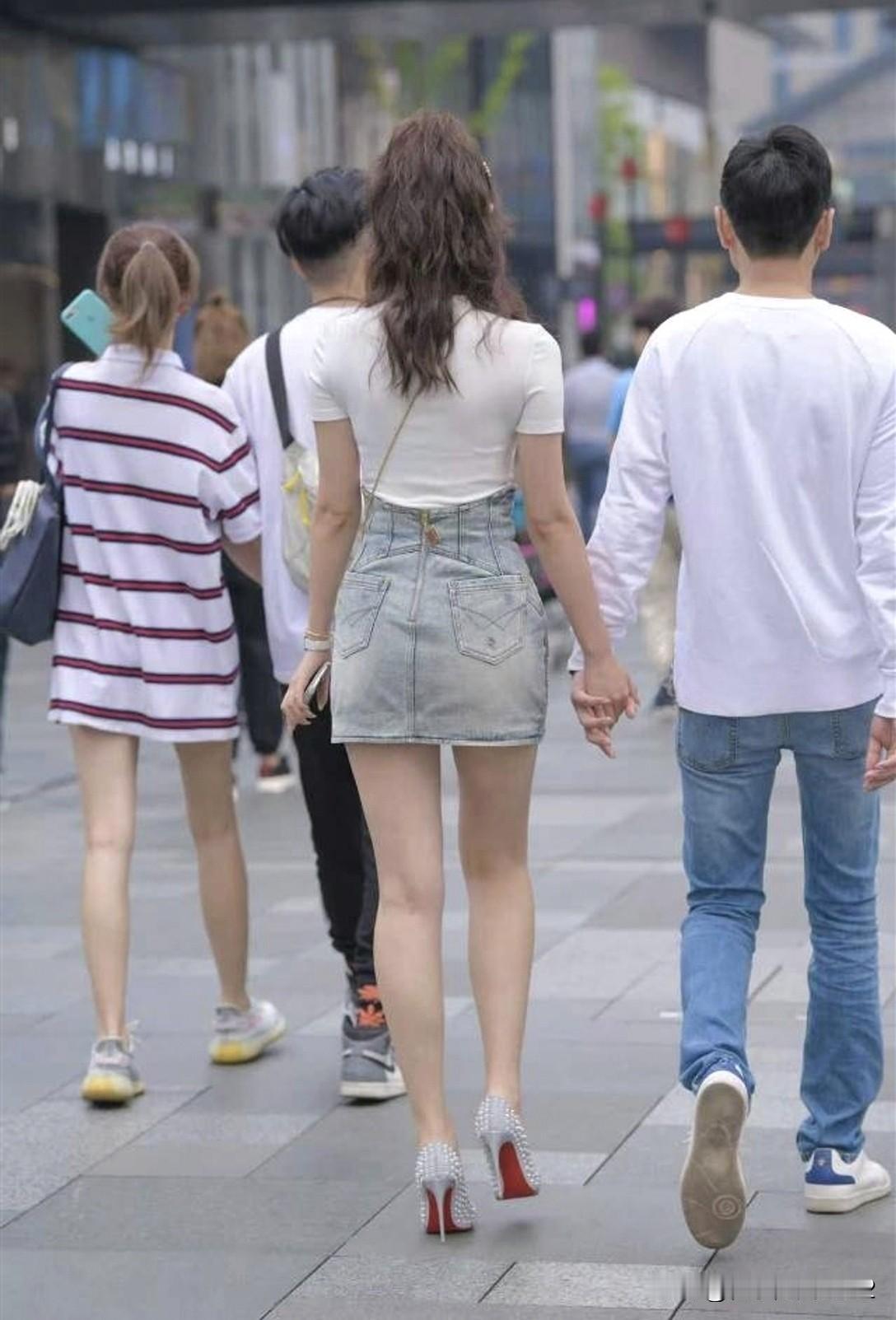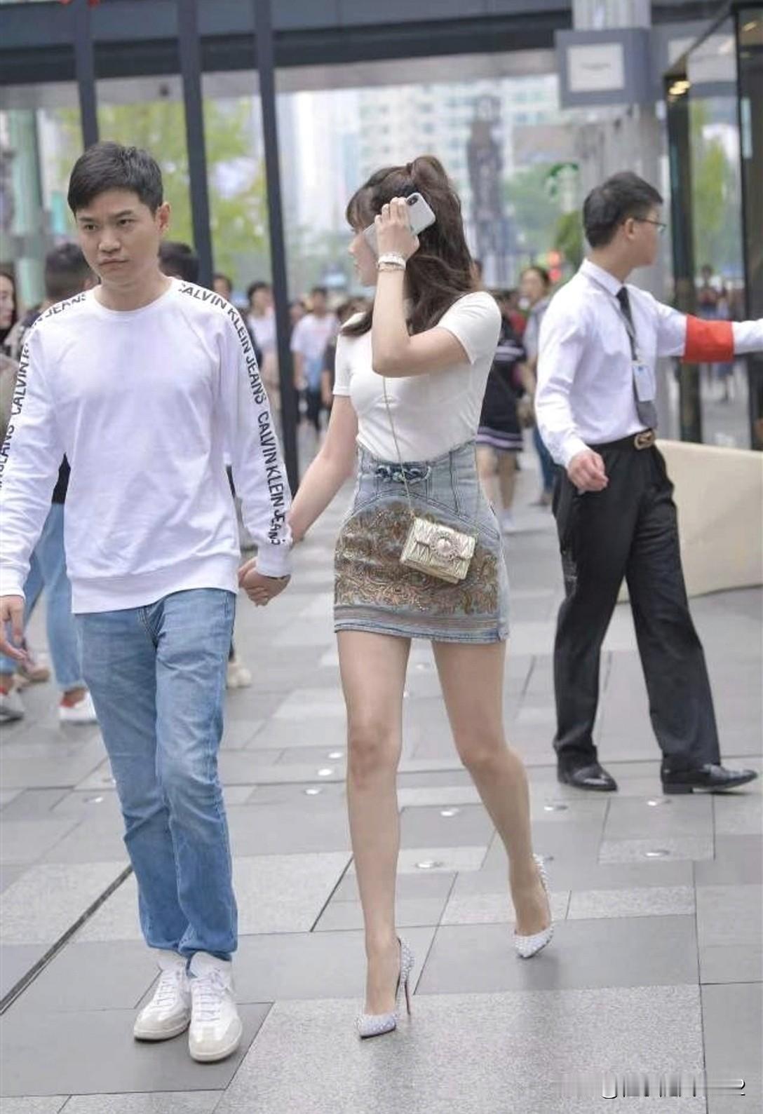 手牵手漫步在繁华街头,时尚与甜蜜并存