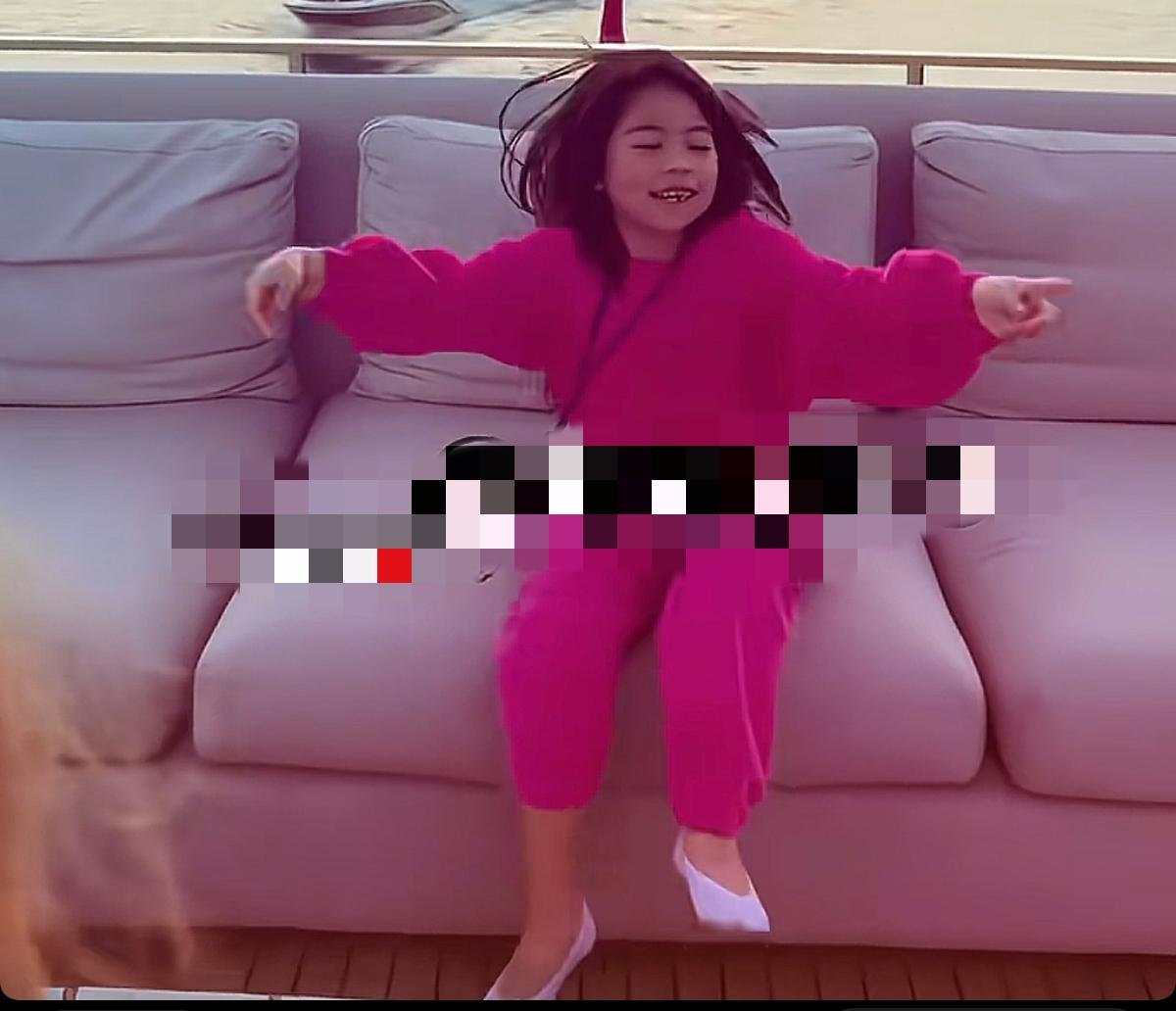 何超盈女儿荷包蛋在豪华游轮上如此兴奋,五官和爸爸辛奇隆特别像,估计将来也是学霸!