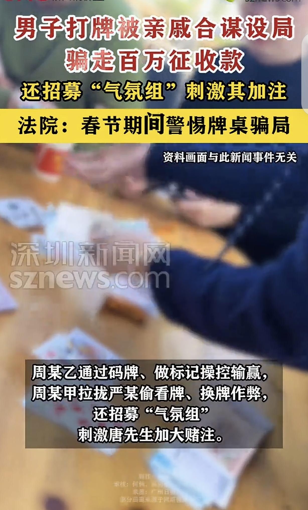 “做人就得六亲不认!”湖南长沙,一男子拆迁得了几百万,一亲戚听说后很是眼红。知道男子爱玩牌,竟联合他人以“斗牛”的方式策划“杀猪盘”。5个月时间,从男子手里赢了175.12万,其中60万没得手,为了逼真,亲戚还招募多人组成“气氛组”,刺激男子加注。最后的结局悲剧了。 那个价值60万的决定性瞬间,发生在第五场牌局的尾声。 空气仿佛凝固了。唐先生的手悬在半空,那笔原本打算推入牌池的60万元筹码——或者是准备转账的手指——硬生生停住了。这不是一次普通的犹豫,这是一个人在悬崖边缘的本能刹车。 坐在他对面的,不是面目狰狞的劫匪,而是平日里推杯换盏的亲戚周某甲。此时此刻,唐先生的身后已经留下了一个惊人的窟窿:175.12万元。 这笔巨款从他的账户里蒸发,只用了短短5个月。这哪能算打牌?分明是一场“外科手术式”的精准掠夺,目标直指他那两百多万的征地拆迁补偿款,将其从他手中无情摘除。 让我们把时钟拨回这场猎杀的起点。周氏团伙的布局,精准得像教科书级别的博弈论实战。 第一场牌局,他们并没有露出獠牙。与之相反,周某甲与其同伙蓄意“放水”,在与唐先生的较量中故意落败,让唐先生赢取了相当数额的钱款。这在行骗逻辑里,不叫亏损,叫“信任获客成本”。他们所购之物,并非牌局胜负,而是唐先生“运气在我”营造出的虚妄错觉,和后续得以进行大额下注的特权,于这虚幻中,似能寻得别样“机遇”。 一旦唐先生咬钩,猎杀模式随即切换。从第二局开始,牌桌进入了只有庄家可见的“上帝模式”。 周某乙的手法不仅是洗牌,更是“编码”。他于扑克牌上留下细微记号,如此一来,那牌上的花色与点数,于他而言仿若失去了隐秘性,全然透明可辨。而坐在一旁的严某,名为看客,实为“人肉潜望镜”,利用座位优势窥探唐先生的底牌,再通过暗号传递给庄家。 这是一场极度不对称的战争。唐先生在玩概率,而他的亲戚们在玩“开卷考试”。 为掩盖这异常之胜率,该团伙可谓煞费苦心,竟专门招募了一批“气氛组”,妄图以此混淆视听、掩人耳目,其用心之诡谲可见一斑。这群人的作用不是赢钱,而是制造噪点。他们在耳边起哄、怂恿,利用群体压力轰炸唐先生的理性防线,让他来不及思考为何自己的运气会持续性崩盘。 但这个局最毒辣的地方,不在于技术,而在于对人性的腐蚀。 早在那个唐先生炫耀自己拿到拆迁款的下午,亲情就在嫉妒的化学反应下变质了。周某甲眼里的红丝,不是因为熬夜,是因为贪婪。 熟人作案往往最难防范。唐先生之所以能连输五个月才醒悟,是因为“亲戚”这个身份成了最好的迷彩服。输给陌生人,易使人警醒惕厉;然而输给亲戚时,人们常常会自我宽慰,将其合理化,视之为“花钱以联络亲情”。这种基于血缘的信任盲区,正是杀猪盘最锋利的刀刃。 好在,那60万的“熔断”保住了他最后的底裤。唐先生终于意识到,概率学不会针对某一个人,除非有人在概率上动了手脚。 报警,是逻辑回归理性的开始。司法系统的介入,迅速刺破了温情脉脉的面纱。 为什么是诈骗罪而不是赌博罪?法槌落下的逻辑非常清晰:赌博是射幸行为,结果具有不可控性。而一旦牌桌被物理标记、输赢被信号控制,这就脱离了赌博的范畴,变成了以非法占有为目的的抢劫。 法院的判决是对贪婪最精准的定价:涉案金额175.12万元(实际得手约115万),属于“数额特别巨大”。 主犯周某甲最终换来了最高12年的有期徒刑。 唐先生保住了最后的60万,却不得不面对一个比输钱更寒冷的现实:那115万的学费,买来了一个残酷的真理——在巨大的利益诱惑面前,有时候,“六亲不认”不仅是坏人的信条,也本该是好人的防线。 信息来源:光明网:《男子领到百万元征收补偿款,被亲戚组牌局骗走175万多元》
