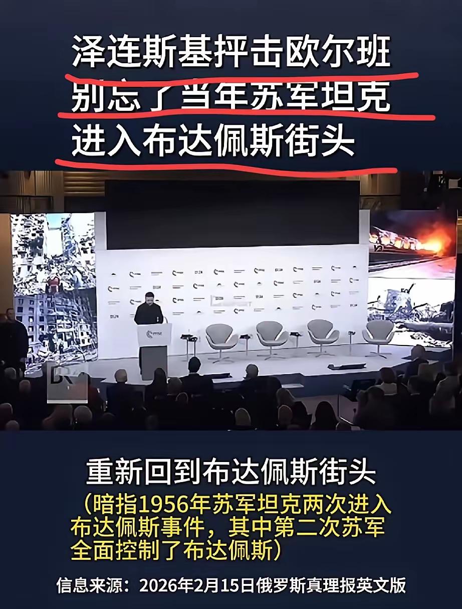 泽连斯基提醒欧尔班: “匈牙利事件”回望:1956年10月,匈牙利民众要求改革与苏联撤军。纳吉出任总理后宣布匈牙利中立并退出华约。/内容 这话从泽连斯基嘴里说出来,味儿就变了。慕尼黑安全会议上,他盯着欧尔班,话里藏着刀锋——提醒匈牙利人别忘了1956年那场血与火的教训。翻译过来就是:当年苏联的坦克能开进布达佩斯,今天俄罗斯的装甲车凭什么不能再来? 欧尔班那张脸当时什么表情,镜头没给特写,但谁都能想象那种被当众扇耳光的难堪。这位匈牙利强人执政十几年,在欧盟里横着走,怼天怼地怼布鲁塞尔,唯独在莫斯科面前软得像块黄油。泽连斯基这一刀捅得刁钻,你不是最爱拿民族主义说事吗?那我就用你们匈牙利人最疼的历史伤疤提醒你——当年苏联坦克碾过布达佩斯的时候,可没管你是不是“兄弟国家”。 1956年10月23日,布达佩斯的街头涌起几十万人的怒潮。工人们、学生们、甚至穿着军装的士兵,他们推倒了斯大林雕像,喊着“俄国佬滚出去”。纳吉·伊姆雷临危受命,站在国会大厦阳台上,面对黑压压的人群承诺改革、承诺自由、承诺退出华约。那种场景,像极了后来无数次东欧变天的预演——民众以为曙光来了,却不知道坦克履带已经在边境线上轰鸣。 纳吉信了苏联的承诺。11月1日,他宣布匈牙利中立、退出华沙条约,给联合国秘书长写信请求保护。可就在他说话的同一时刻,苏联国防部长朱可夫已经下达了进攻命令。11月4日凌晨,上千辆苏军坦克碾过布达佩斯的街道,纳吉躲进南斯拉夫大使馆,后来被哄骗出来,两年后绞死在监狱里。临死前他说:“总有一天,全世界会知道我是无辜的。” 泽连斯基把这个故事甩在欧尔班脸上,潜台词再清楚不过:你以为跟普京勾肩搭背就能保平安?1956年的匈牙利人也这么想过,结果呢?布达佩斯街头的血干了七十年,今天你去看看那些墙上的弹孔,还能摸到历史的疤痕。欧尔班倒好,一边领着欧盟的补贴,一边给俄罗斯递刀子,这种两头吃的把戏,真当历史不会重演? 欧尔班事后在社交媒体上冷笑着回应,说泽连斯基的讲话“会让匈牙利人更清醒地看清局势”。他这话说得滴水不漏,甚至透着股傲慢——你一个战火中求生存的总统,有什么资格来教训我这个“太平总理”?可问题是,太平是怎么来的?乌克兰人死在战壕里的时候,匈牙利人正舒舒服服地享受着俄罗斯的便宜天然气。欧尔班的“清醒”,说白了就是精致的利己主义:只要战火不烧到我家门口,管他洪水滔天。 但泽连斯基这番话真能刺痛欧尔班吗?恐怕难。欧尔班这种人精,最擅长的就是选择性失忆。1956年的教训,他比谁都清楚,只是装糊涂罢了。他走的是钢丝,一边哄着欧盟给钱,一边哄着普京给气,两边都不得罪,两边都捞好处。可问题是,历史最擅长的就是打脸那些自以为聪明的骑墙派。当年波兰的哥穆尔卡也觉得自己能左右逢源,最后呢?还不是在苏联的阴影下苟延残喘。 纳吉临死前那句话,今天听来格外刺耳。他说自己是无辜的,可历史从来不冤枉人。真正无辜的是那些1956年倒在街头的匈牙利年轻人,他们以为自由来了,等来的却是坦克。今天的乌克兰人正在重复这种悲剧,只不过这次换成了俄罗斯的导弹和无人机。泽连斯基提醒欧尔班,不是想羞辱他,是想让他摸摸自己的良心——当别人的孩子在流血时,你在数钱,这钱拿得烫手吗? 当然,欧尔班不会这么想。他坐在布达佩斯的办公室里,看着地图上的乌克兰,大概觉得自己高明得很。可他忘了,当年纳吉也以为谈判能解决问题,结果连命都没了。历史从不重复,但总是押着同样的韵脚。等到哪天真有坦克往布达佩斯开的时候,欧尔班再想打电话给普京,恐怕对面已经关机了。 各位读者你们怎么看?欢迎在评论区讨论。