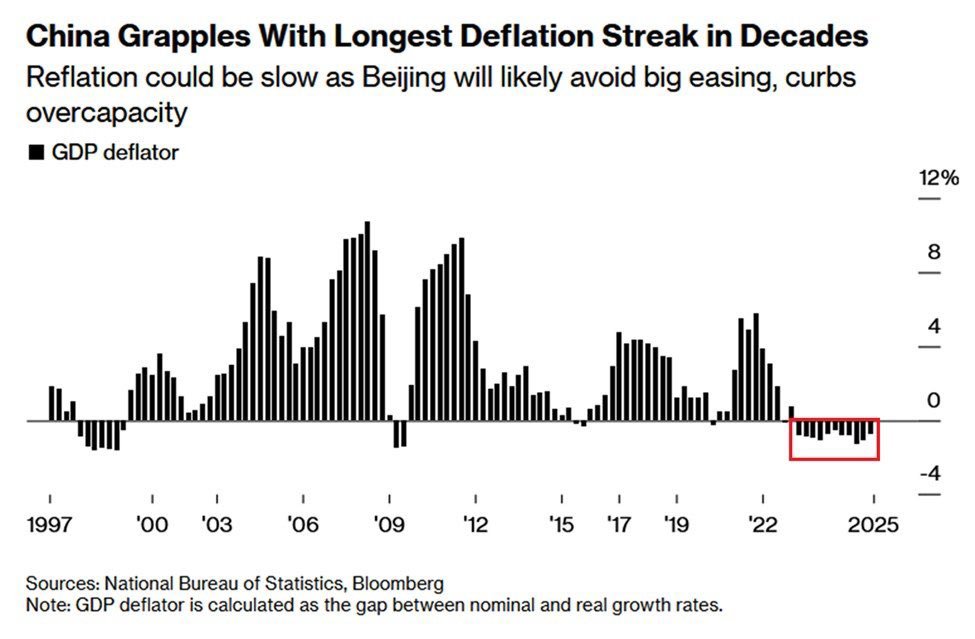 1997年至2025年中国GDP平减指数(GDP deflator)