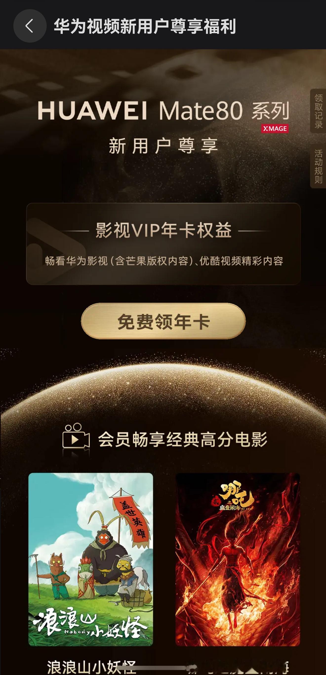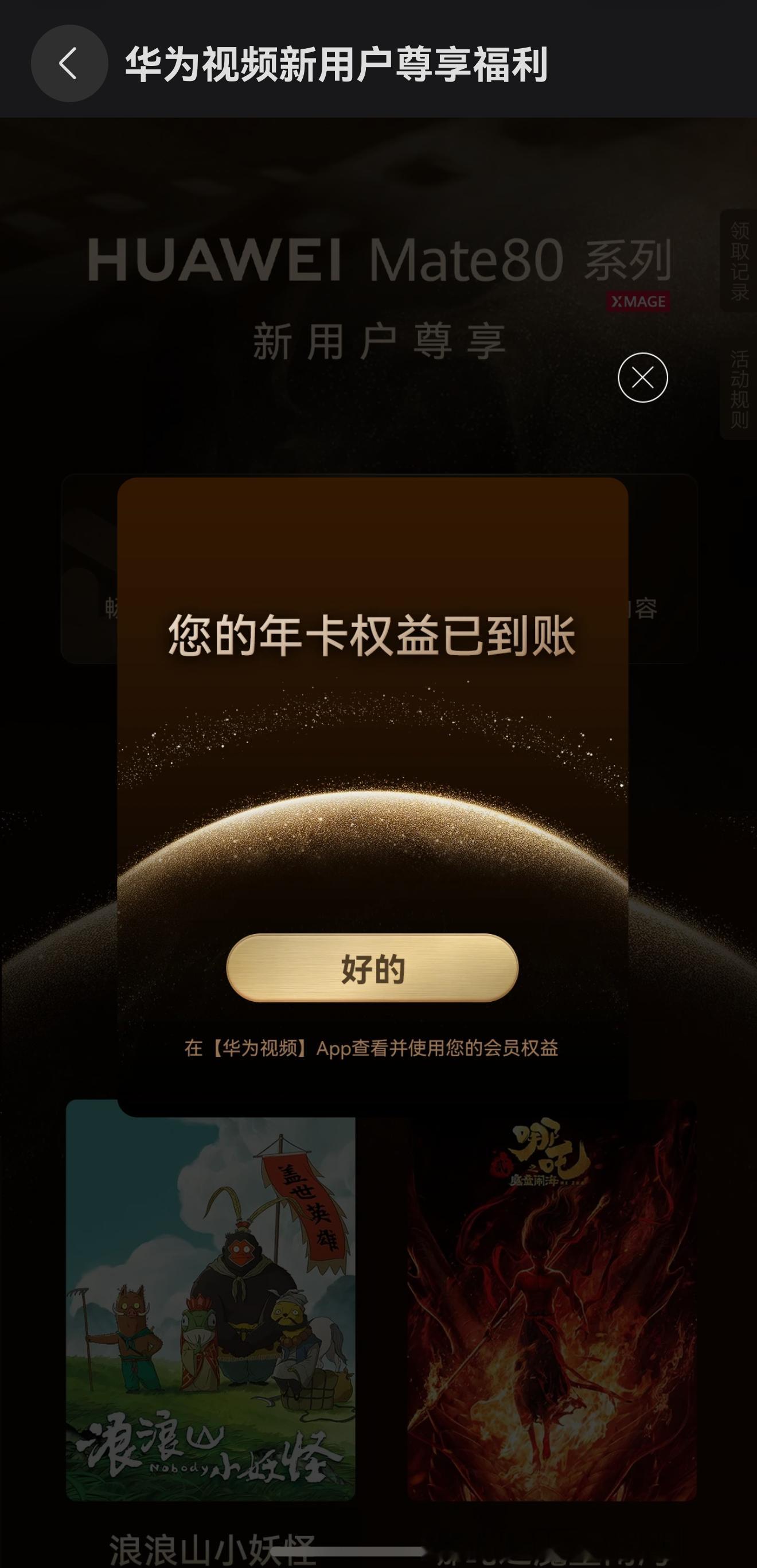 华为Mate80系列和Mate X7系列在华为视频可以领取一年视频会员了,都领了吗