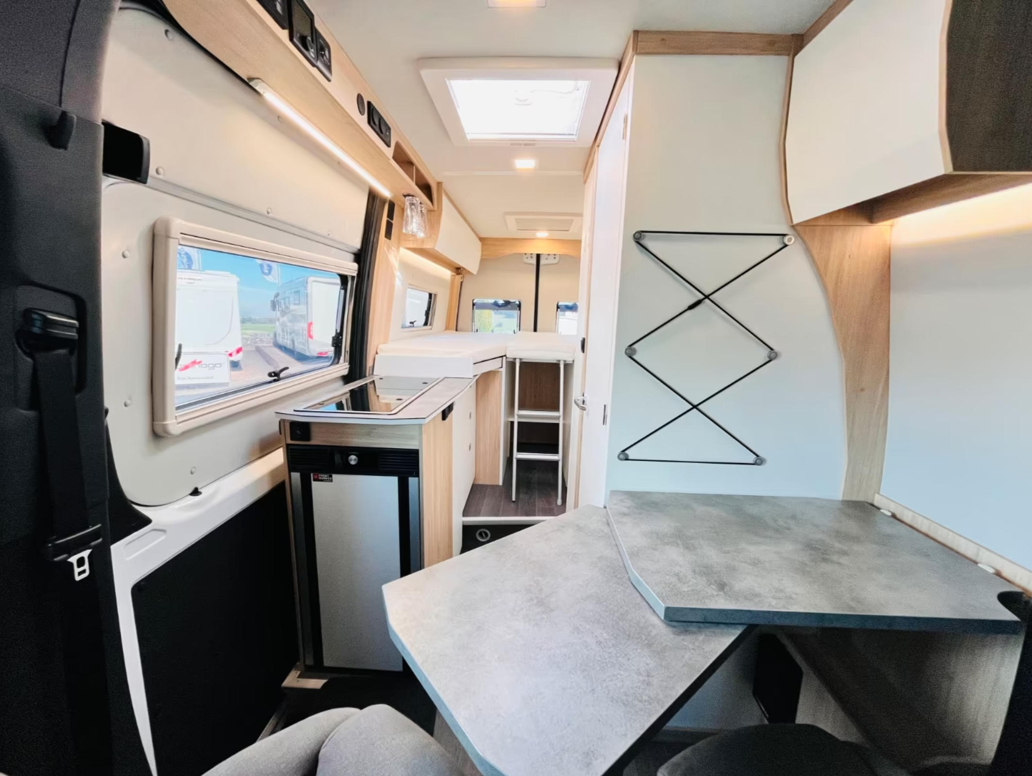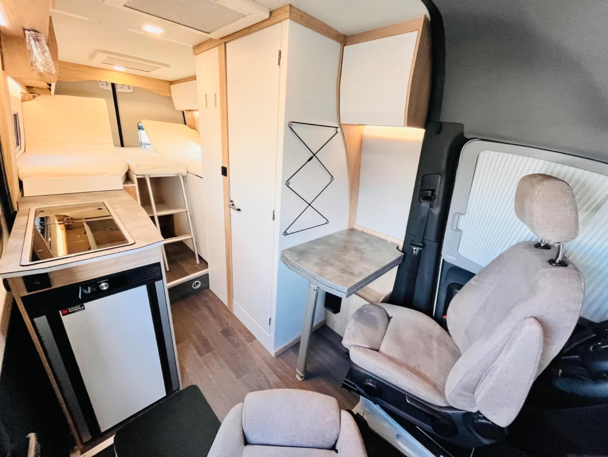 特殊车辆 Frankia YUCON,去掉卡座,6米的房车空间就够用了,房车就这么点地方,只能学会做减法,而且B型房车就是1-2个人用的,两大一小都费劲,再多就甭想了。