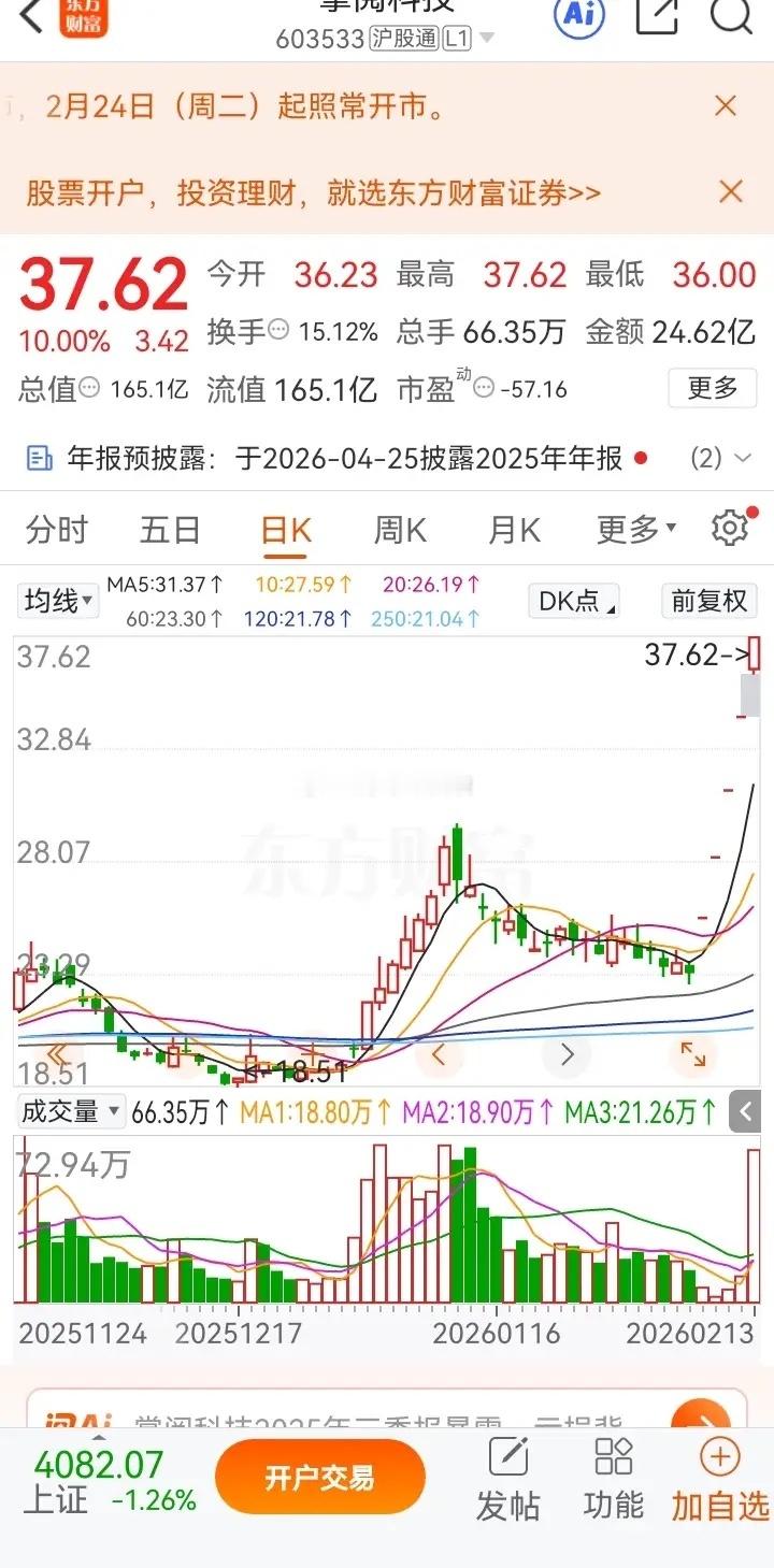 万万没想到,一只业绩亏损的个股,竟走出了上周全市场最凌厉的行情!5天连收5个涨停,股价从22元直线拉升至37元,短短数日涨幅超60%,拉升力度堪称惊人。拉长周期来看,当前股价已触及前期强阻力区域。此前该位置曾至少三次遇阻回落,均被空头强势压制,此番再度冲关,行情大概率不会一帆风顺,此处势必迎来更剧烈的震荡分化。平心而论,唯有扎实的基本面,才能支撑股价在连续大涨后稳住高位;缺乏基本面支撑的上涨,终究只是昙花一现,泡沫一旦破裂,股价便会快速回落。市场上不少靠资金蛮力硬拉的个股,前一周还是领涨先锋,下一周就可能直线跳水,沦为领跌品种。亏损股能走出大幅上涨行情,核心驱动力是大资金推动,这类标的本质上多为短线炒作标的——资金在场则股价短期暴涨,一旦主力资金获利离场,股价便会迎来大幅回调。股市有风险,投资需谨慎!