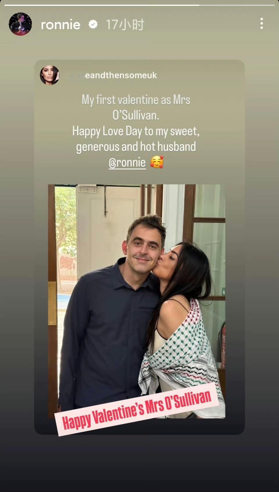 两个人加起来一百多岁,怎么也流行过情人节?不过图片确实很有少年感…… 奥沙利文转发妻子罗阿斯动态:我作为奥沙利文太太的第一个情人节,祝我甜蜜、慷慨又火热的丈夫罗尼情人节快乐。