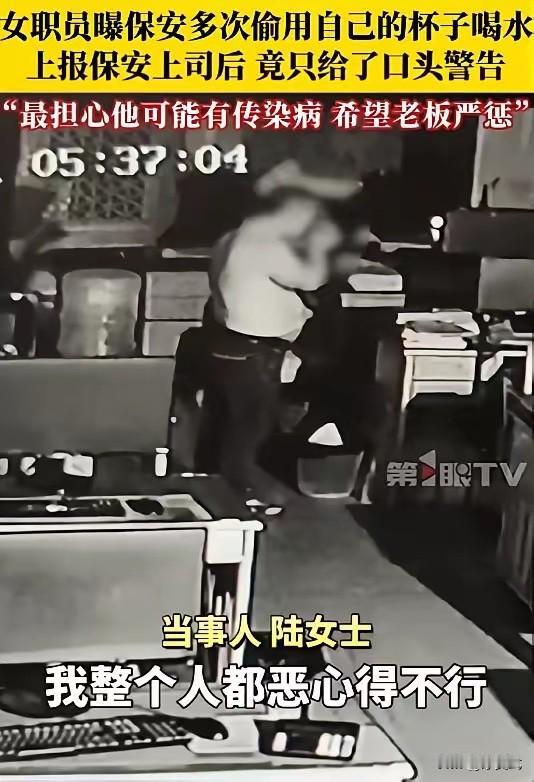 “太恶心了!”广东,一女子查监控,发现男保安几乎天天趁她下班后,用她的杯子喝水,女子瞬间作呕,而之后同事的一句话让她越想越害怕,随即将此事反映给了老板,但老板的处理方式让她难以接受。 在广东的一座繁华写字楼里,年轻女子林悦每天忙碌于工作,写字楼里人来人往,看似平常的氛围下,却隐藏着一件让她意想不到的糟心事。 那天午后,林悦像往常一样在工位上忙碌,突然发现自己的水杯不见了。这水杯对她来说有点特别,是朋友送的,用了好多年,早已习惯。找了一圈无果后,她想着可能是自己不小心放错了地方,就没太在意。然而,接下来几天,水杯依旧时不时消失不见,这让林悦心里犯起了嘀咕。 林悦所在的公司,为了保障办公区域的安全,在各个角落都安装了监控。抱着一丝好奇和疑惑,林悦决定查看一下监控,看看能不能找到水杯的下落。当监控画面中出现熟悉的工位时,她聚精会神地盯着屏幕。 突然,画面中出现了一个身影,是公司的男保安老李。只见他大摇大摆地走到林悦的工位前,左右张望了一下,见周围没人,便伸手拿起了林悦的水杯。林悦眉头紧皱,心中一阵疑惑:“他拿我杯子干什么?” 接着,让她差点吐出来的一幕发生了,老李直接把水杯放到嘴边,大口大口地喝起水来。而且,从监控记录来看,几乎天天趁她下班后,老李都会重复这个行为。 林悦忍不住叫出声来,胃里一阵翻江倒海。她感觉一阵恶寒,想到自己每天都用这个杯子喝水,而这个男保安竟然天天用她的杯子,就止不住地作呕。她满心愤怒,怎么也没想到会发生这样的事。 林悦强忍着恶心,将这件事告诉了身边的同事。同事听后,脸色一变,小声说道:“听说这个保安之前就有一些奇怪的行为,你说他不会有什么传染病吧?” 林悦一听,顿时感觉头皮发麻,越想越害怕。她的脑海里开始浮现各种可怕的疾病,心中的恐惧如潮水般蔓延开来。 林悦再也坐不住了,她决定将此事反映给老板,希望能得到一个合理的解决办法。她气冲冲地来到老板办公室,将监控视频拿给老板看,一脸委屈和愤怒地诉说着事情的经过,最后说道:“老板,您看这事儿怎么解决?他这样的行为实在太过分了,我现在心里特别膈应,而且还担心自己的健康。” 老板看了看监控视频,眉头微微一皱,沉思片刻后说道:“林悦啊,老李在咱们公司工作也有些年头了,一直都挺老实本分的。可能他就是一时没注意,犯了个错。你看这样行不行,我去跟他说一下,让他给你道个歉,再给你买个新杯子赔罪,这事就这么算了吧。” 林悦听了老板的处理方式,心中满是难以接受。她觉得老板根本没有重视这件事,男保安的行为不仅恶心,还可能对她的健康造成威胁,怎么能这么轻易就了事呢?她着急地说道:“老板,这不是一个杯子的问题啊,他的行为已经给我造成了很大的心理阴影,我现在每天都担惊受怕的,万一真染上什么病怎么办?” 老板有些无奈地摆摆手,说道:“林悦,大家都是同事,抬头不见低头见的,没必要把事情闹得太僵。而且,你也没有证据证明他有传染病不是吗?得饶人处且饶人,大家以后还要一起共事呢。” 林悦看着老板,心中充满了失望。她没想到老板会是这样的态度,完全不顾及她的感受。她不知道该如何是好,一边是让她恶心又害怕的男保安,一边是不重视此事的老板。她感觉自己陷入了一个孤立无援的境地,这件事就像一块大石头,沉甸甸地压在她的心头,让她喘不过气来。这场由男保安用杯子喝水引发的风波,不知将如何收场,而林悦又该何去何从,一切都充满了未知。