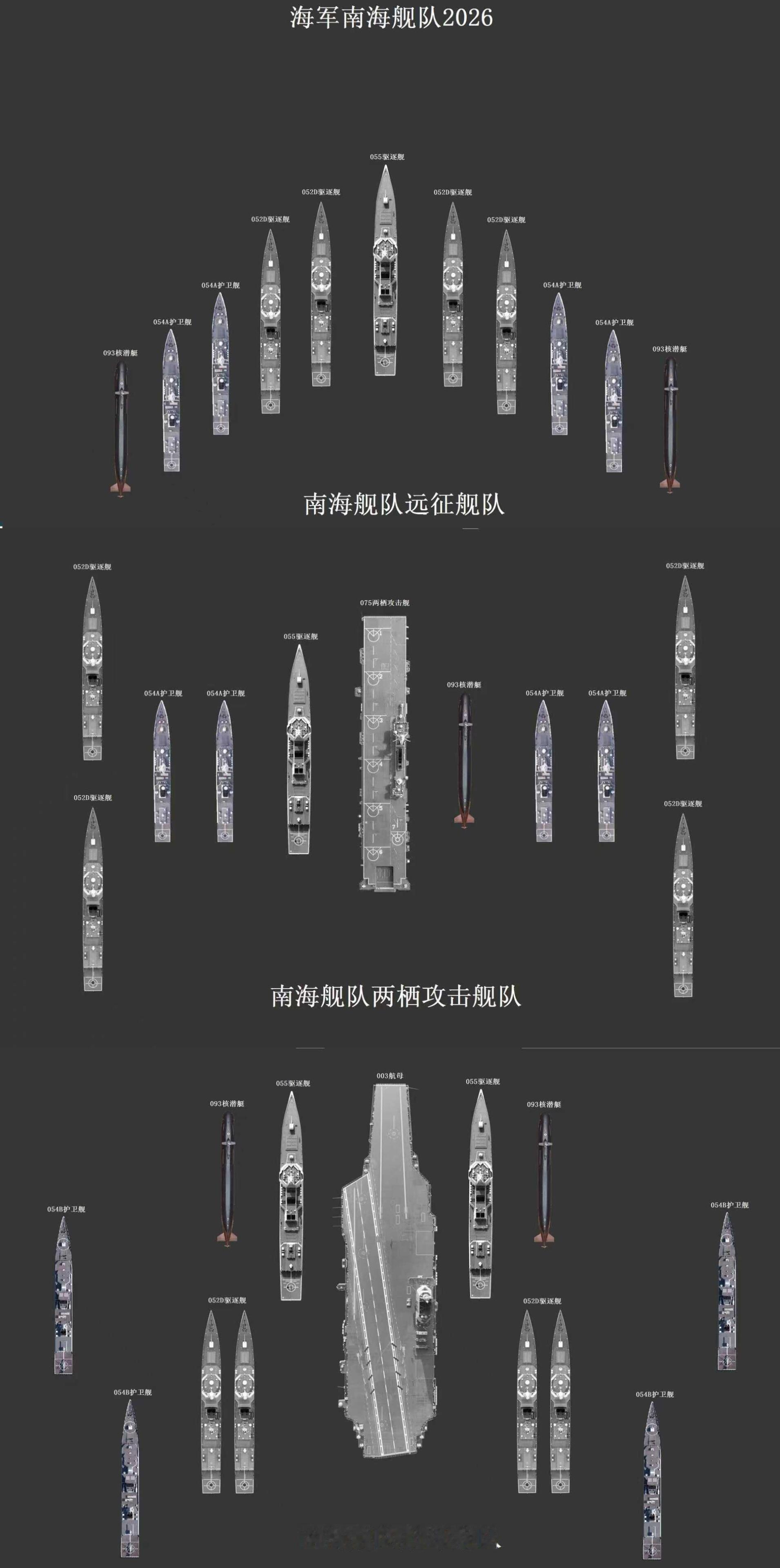 网友制作的我海军三大舰队现有的舰艇都能组建起怎样的攻击舰队,这样的配置可以说类型齐全,而且随便拉出来一个都堪称“灭国舰队”。