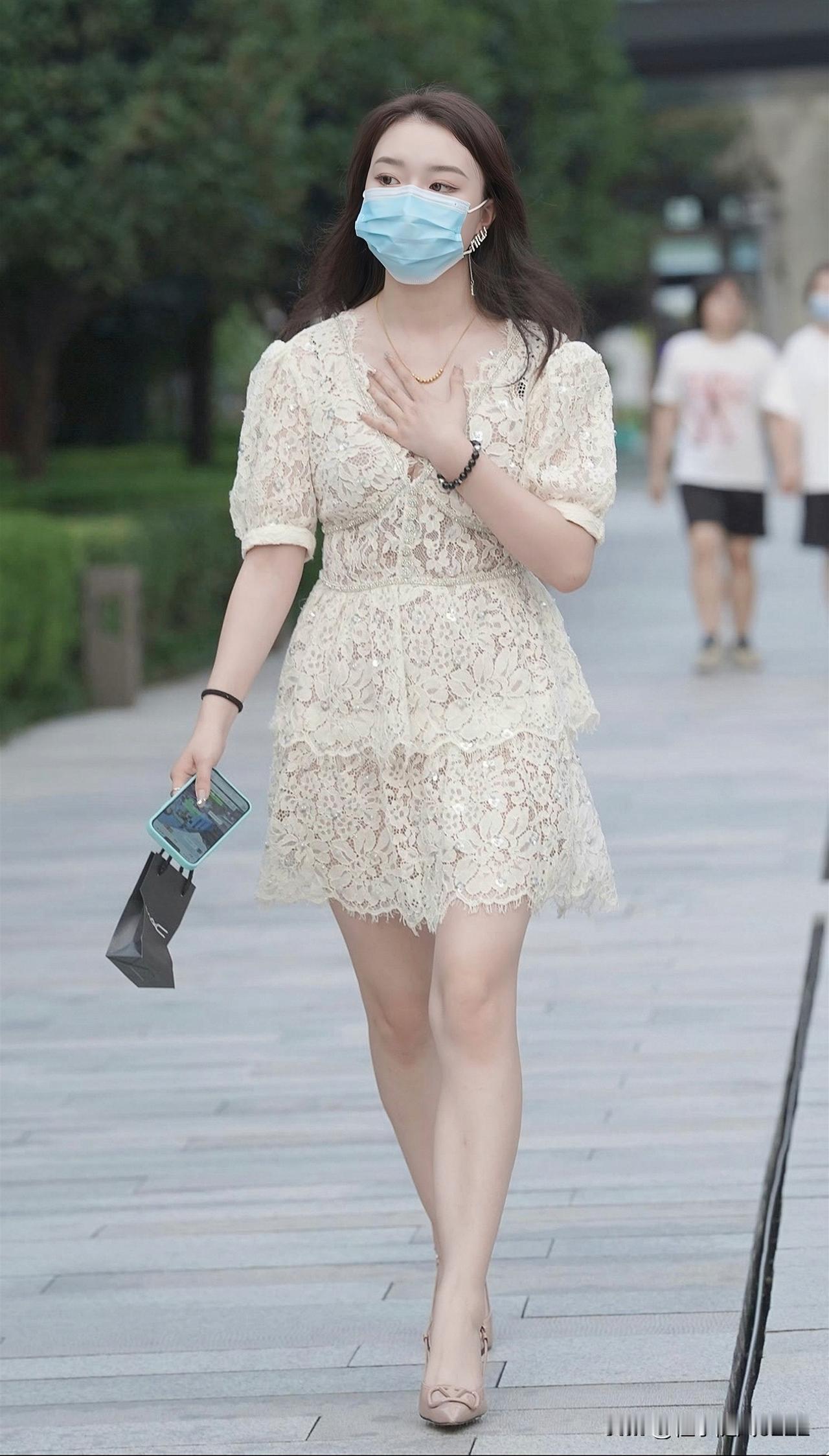 夏日穿搭指南:蕾丝连衣裙+口罩,清新又时尚