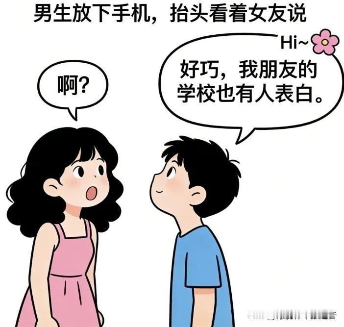 趣味漫画:约会时,女生开心的告诉男友:今天有男同学表白,直接拒绝了。男:我朋友学校表白那女的当场就亲上了。