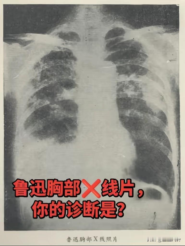 原来鲁迅时期就有胸部X光片了,从片子上可以看出双上肺结核伴右侧胸腔积液了 鲁迅是因为肺结核死的,鲁迅的确爱抽烟。应该有遗传因素,他父亲当年也是死于肺病,鲁迅以前也是学医的。如果真的再能活20岁,先生也会死的,他眼里容不下沙子,他不会象郭沫若一样活着的。