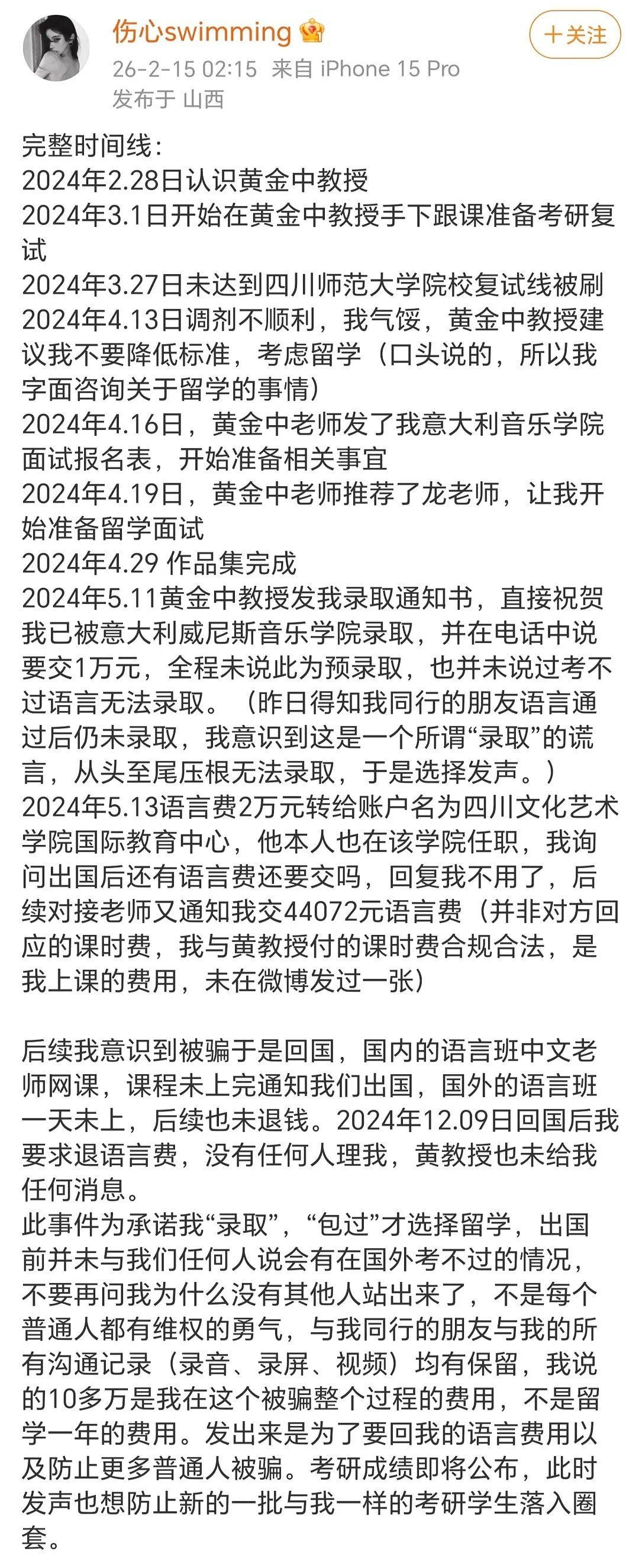 黄子弘凡爸爸事件受害人发时间线了,这个事情处理不好肯定会有影响