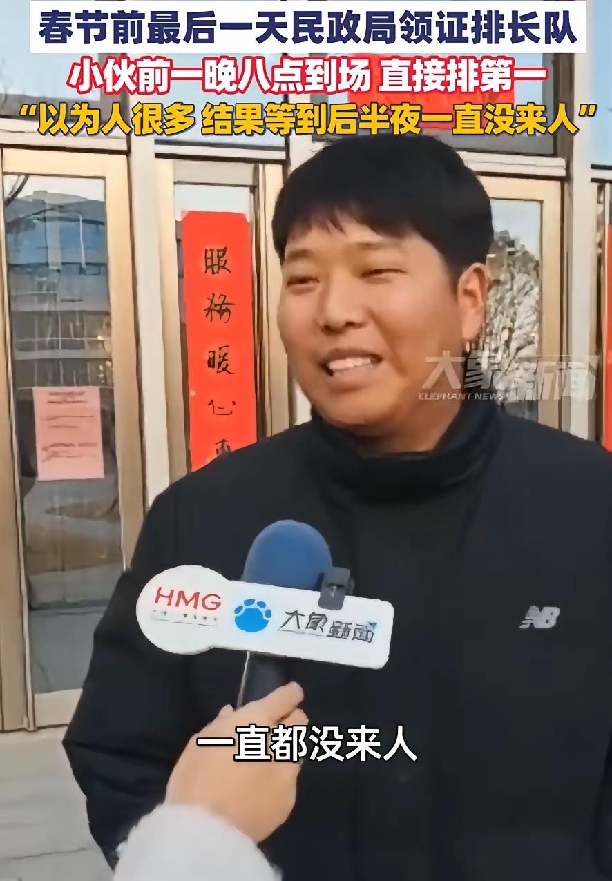 这也太尴尬了!河南郑州,男子想着情人节当天到民政局领证,因为怕排队的人太多,要等太久,提前一天晚上8点就到民政局门口排队,结果一直等到半夜都只有他自己一个人。网友:看得出这血条还是挺厚的 满心盼着情人节领证的小伙子,愣是把全网都在凑的浪漫热闹,过成了独属于自己的深夜坚守。晚上8点就蹲守民政局门口,熬到半夜连个结伴的人都没遇上,这份执着又尴尬的模样,看着好笑又藏着藏不住的真诚。 他显然是照着往年的经验做的准备。往年520、情人节,郑州民政局门口总能排起长队,有人带马扎、有人裹厚外套,就为了抢个早号。小伙子怕人多耽误事,提前十多个小时就位,把对婚姻的重视,全揉进了这趟通宵等待里。 他没料到的是,如今郑州的婚姻登记早就不用靠“盲排”拼运气。打开郑好办APP,搜一下结婚登记,选好日期和时段就能预约,到点直接办手续,全程高效又省心。不光郑州,全国多数城市都普及了线上预约,热门日期的号源早被抢空,提前预约成了新人的共识。 没人排队的真相,不是没人想在情人节领证,是大家都学会了更聪明的方式。年轻人依旧偏爱情人节的浪漫寓意,却不愿再用熬夜受冻的方式换取仪式感。政务服务的升级,刚好接住了这份对效率与体面的需求。 尴尬归尴尬,没人会真的笑他傻。愿意为了领证熬通宵、怕出错提前蹲守,这份把伴侣放在心上、把婚姻当回事的心意,比任何排队盛况都珍贵。网友说他“血条厚”,调侃里全是温柔,赞的是他这份不掺水的赤诚。 这事儿也给所有准新人提了个醒,领证前先查好当地的预约政策,别再凭老经验白跑白等。仪式感要留,没必要的辛苦能省则省。婚姻的幸福从来不是靠排队时长衡量,两个人心意相通,每一天都是值得纪念的好日子。 各位读者你们怎么看?欢迎在评论区讨论。